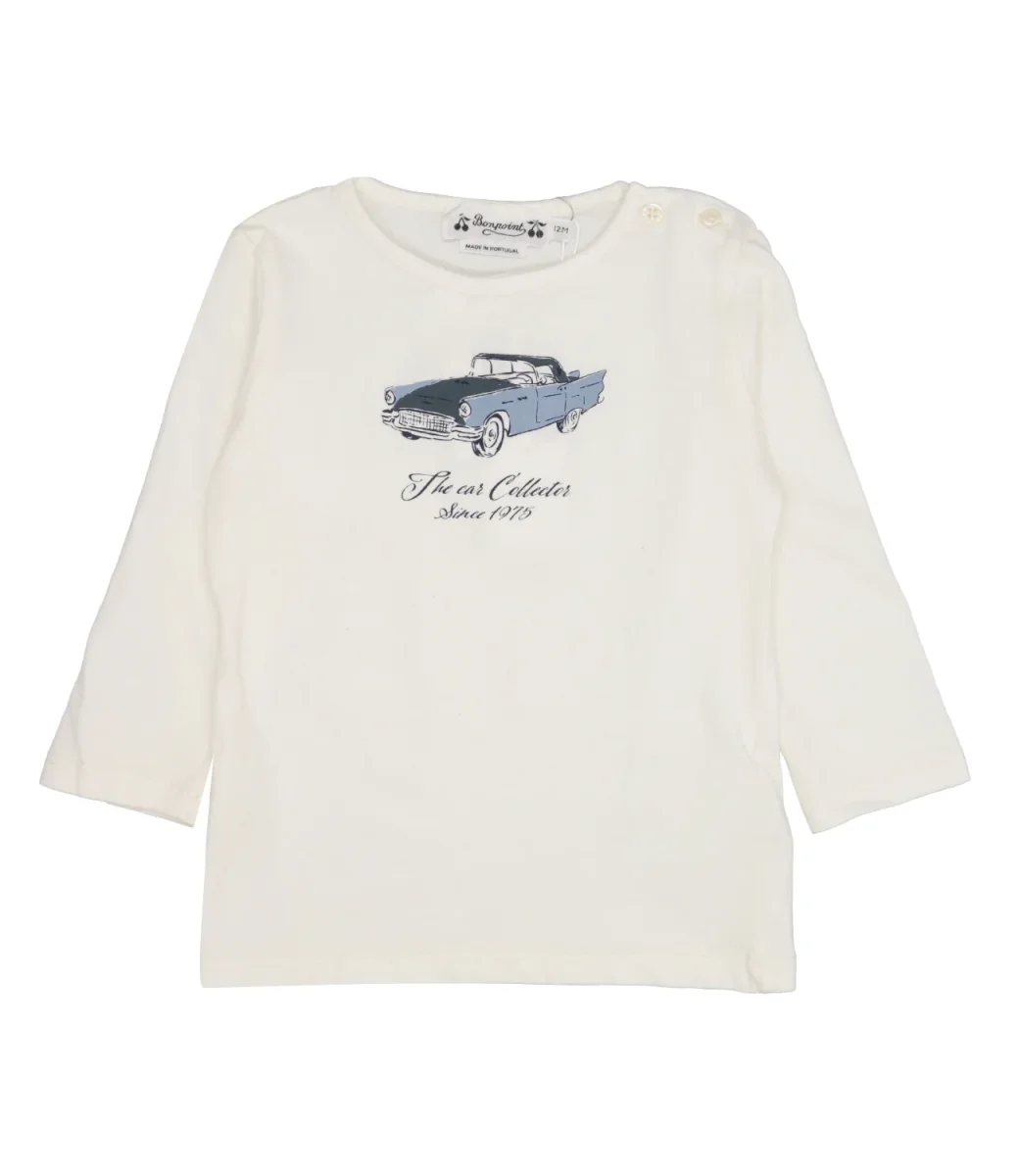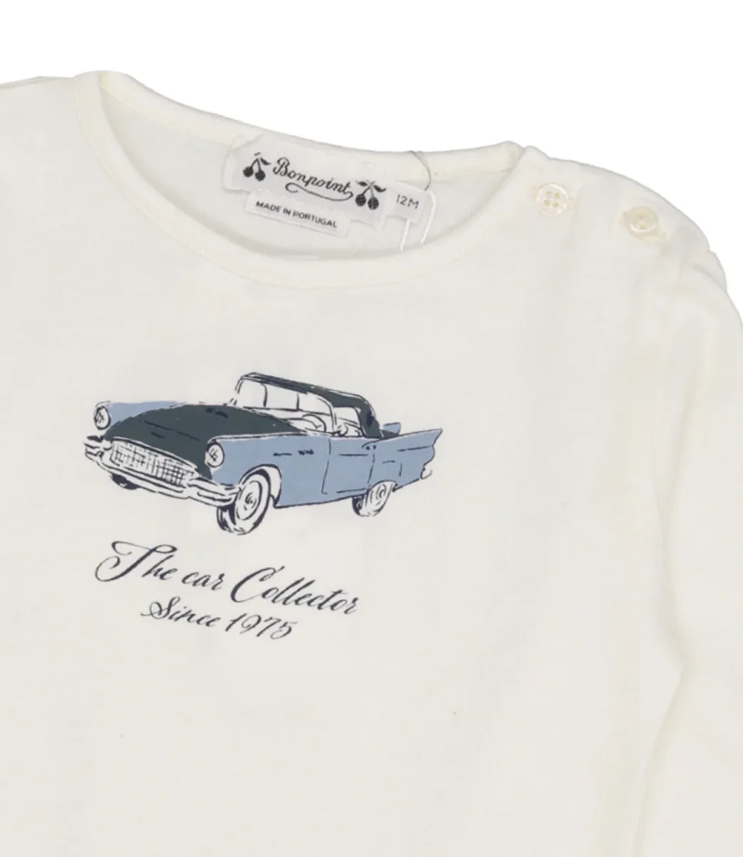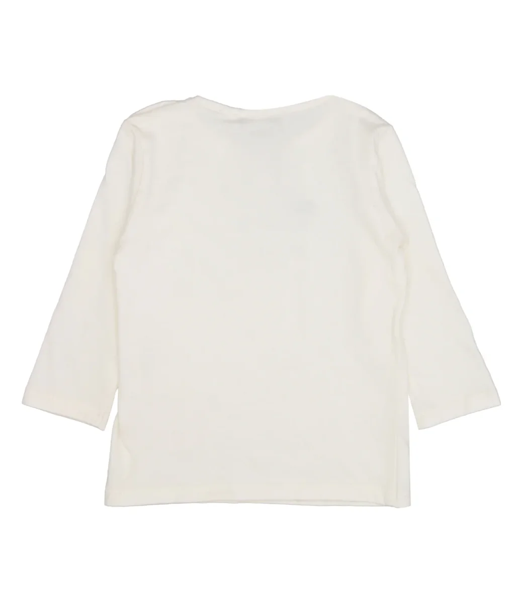 T-Shirt Bonpoint Tahsin realizzato in cotone biologico, design classico girocollo, chiusura con bottoni sulla spalla sinistra, maniche lunghe, fondo dritto, stampa sul torace.