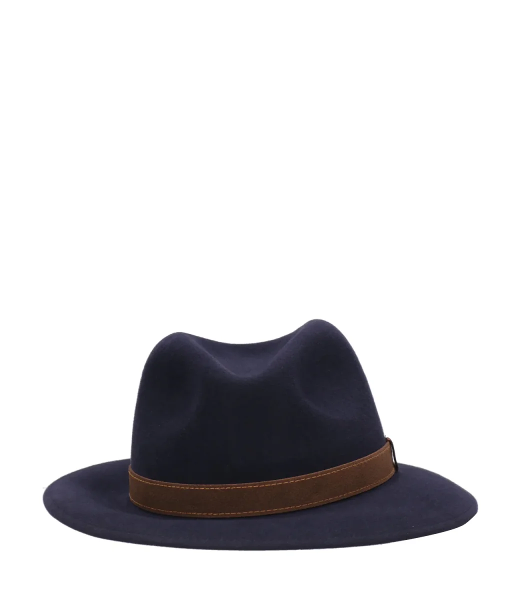Il cappello Borsalino Alessandria della collezione Autunno Inverno è sfoderato e sfoggia una cinta in pelle a contrasto di 2 cm e tesa media di 6,5 cm.