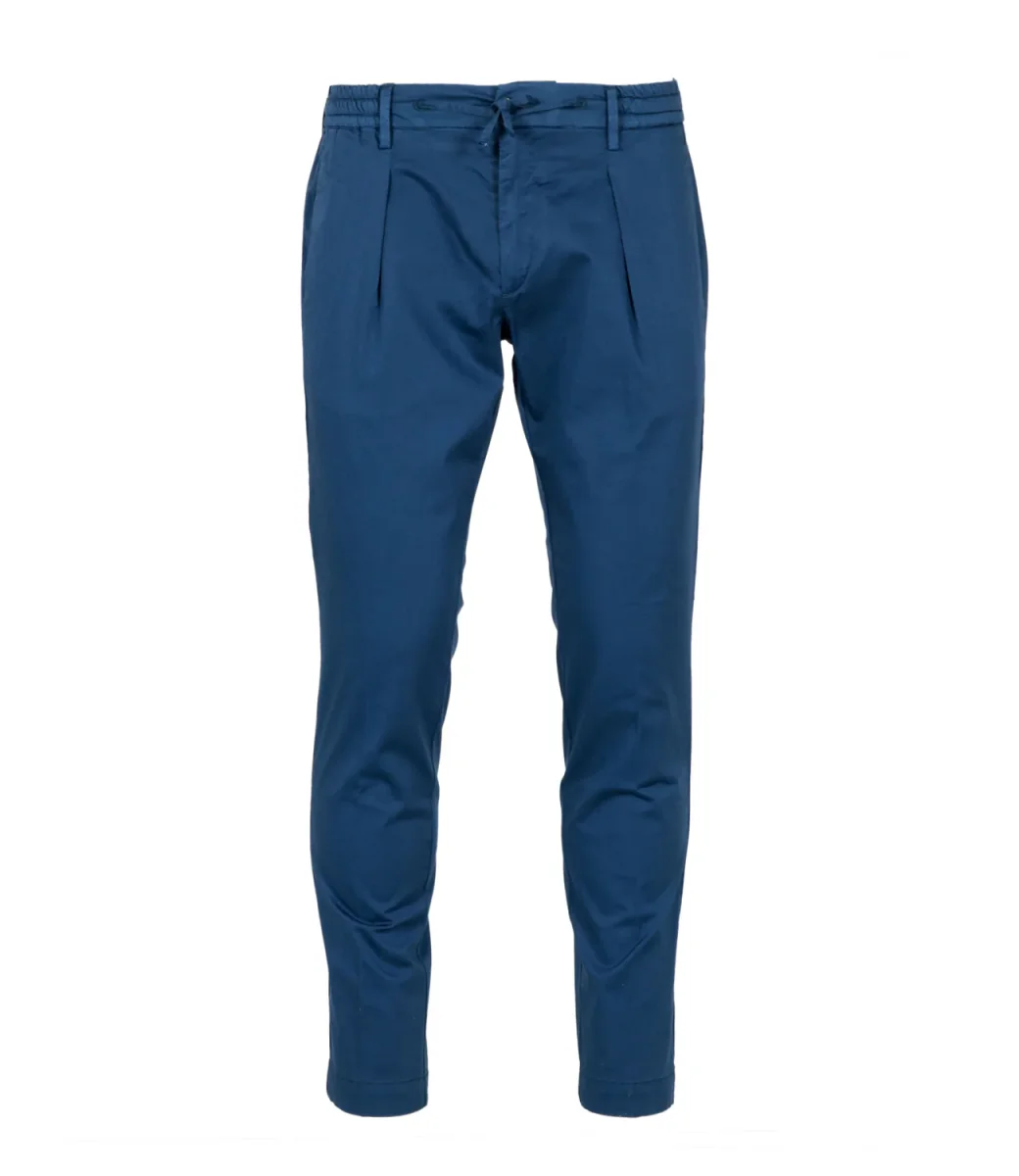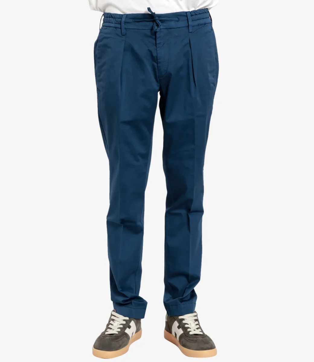 Pantalone Bro Ship in cotone modello Orlando a vita regolare con chiusura con zip e bottone, pinces, gamba a sigaretta e tasche. Il modello è alto 1.75m ed indossa una 29.