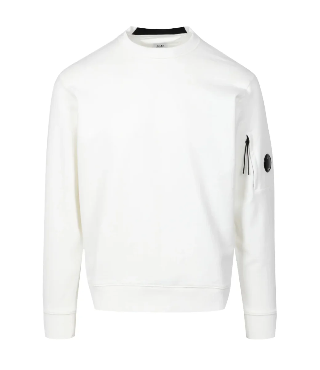 Felpa C.P. Company realizzata in cotone garzato. Design classico iconico del brand, girocollo, maniche lunghe con polsini, taschino con lente sulla spalla sinistra, fondo con bordo a costine.