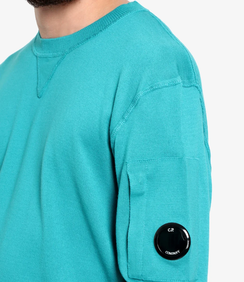 Felpa girocollo con C.P. Company Lens sul taschino della manica. Il capo è realizzato in cotone felpato di peso medio con rilievi diagonali, per unire il massimo comfort a una texture resistente.