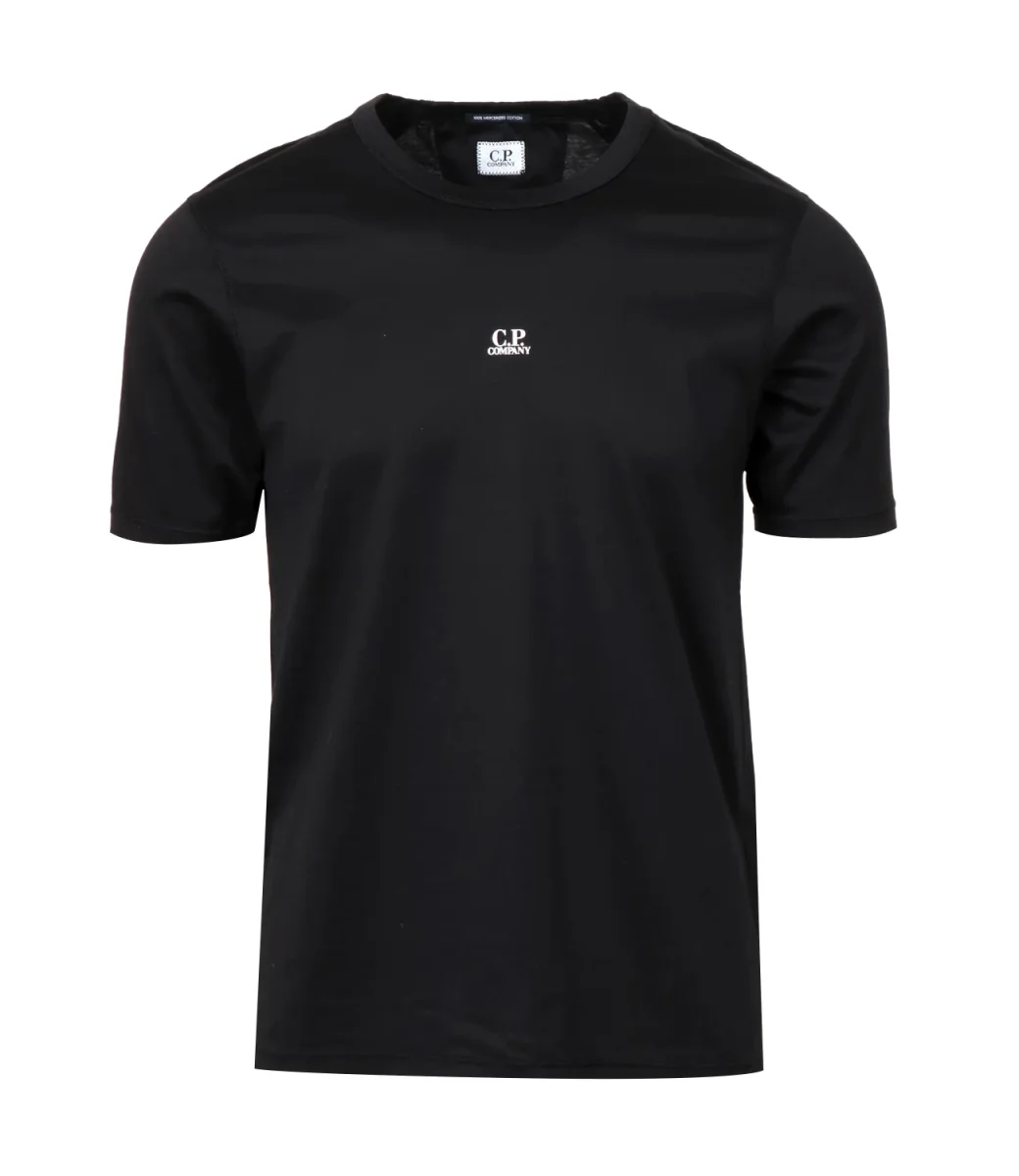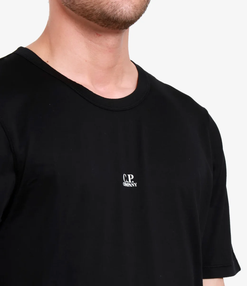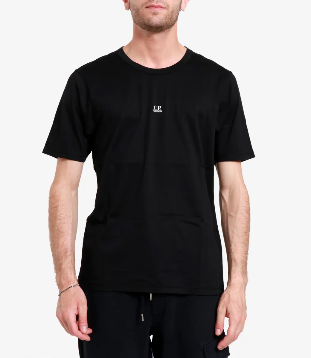 T-Shirt C.P. Company in jersey di cotone mercerizzato 70/2 gasato, girocollo, maniche corte, logo sul petto, fondo dritto.