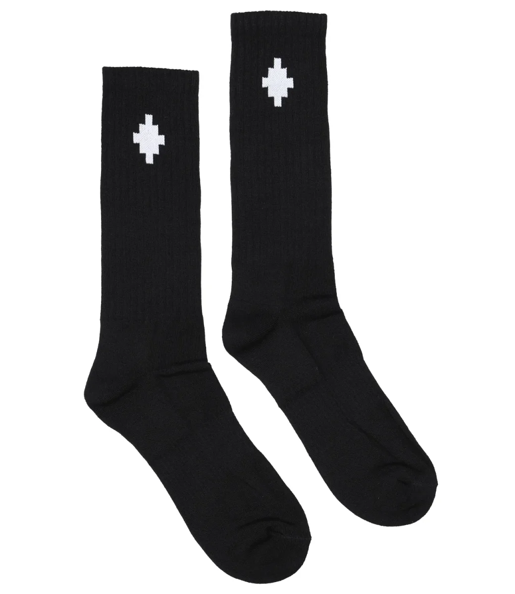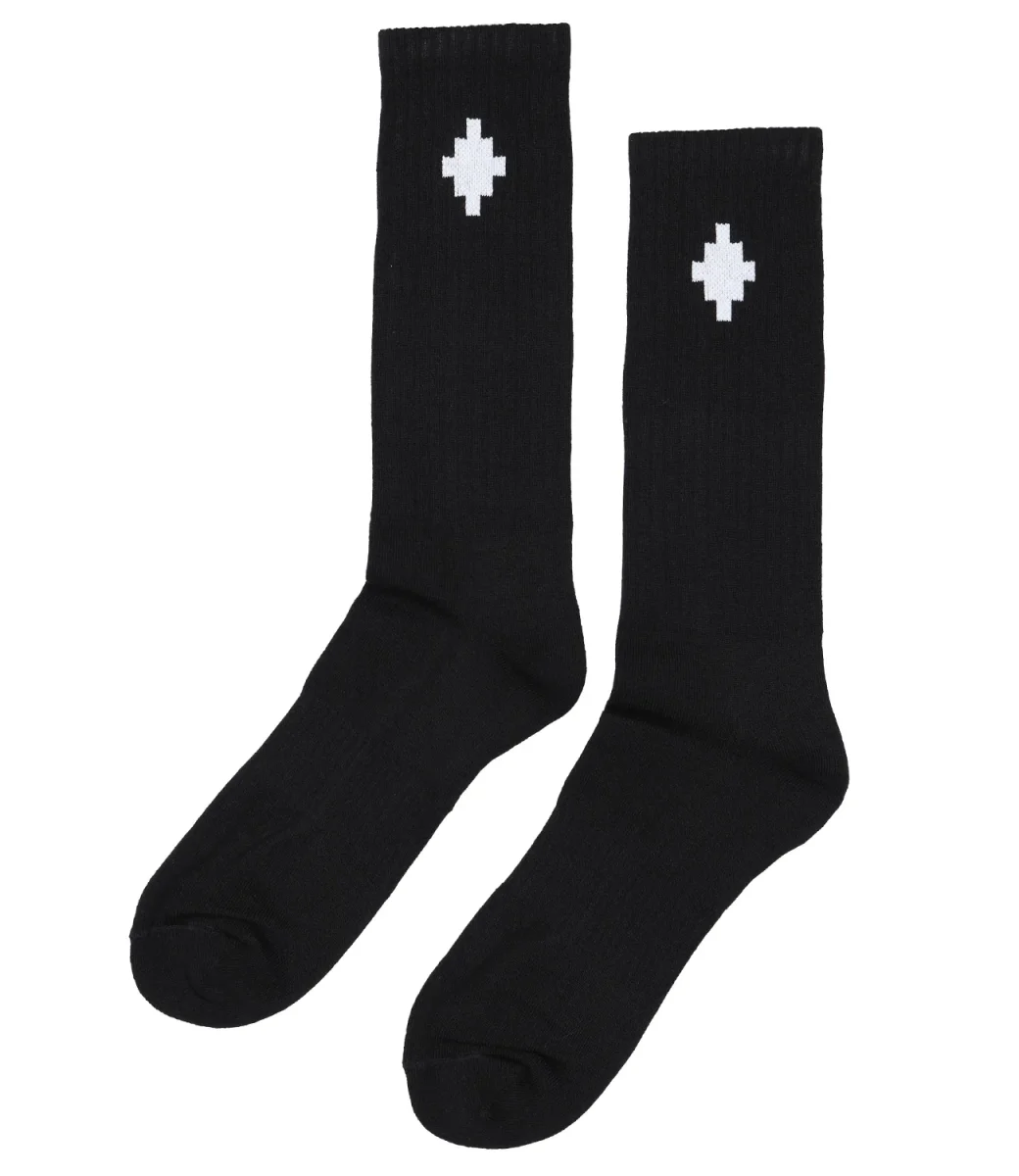 Calzini Marcelo Burlon in cotone nero con logo a croce bianco ricamato sul lato.