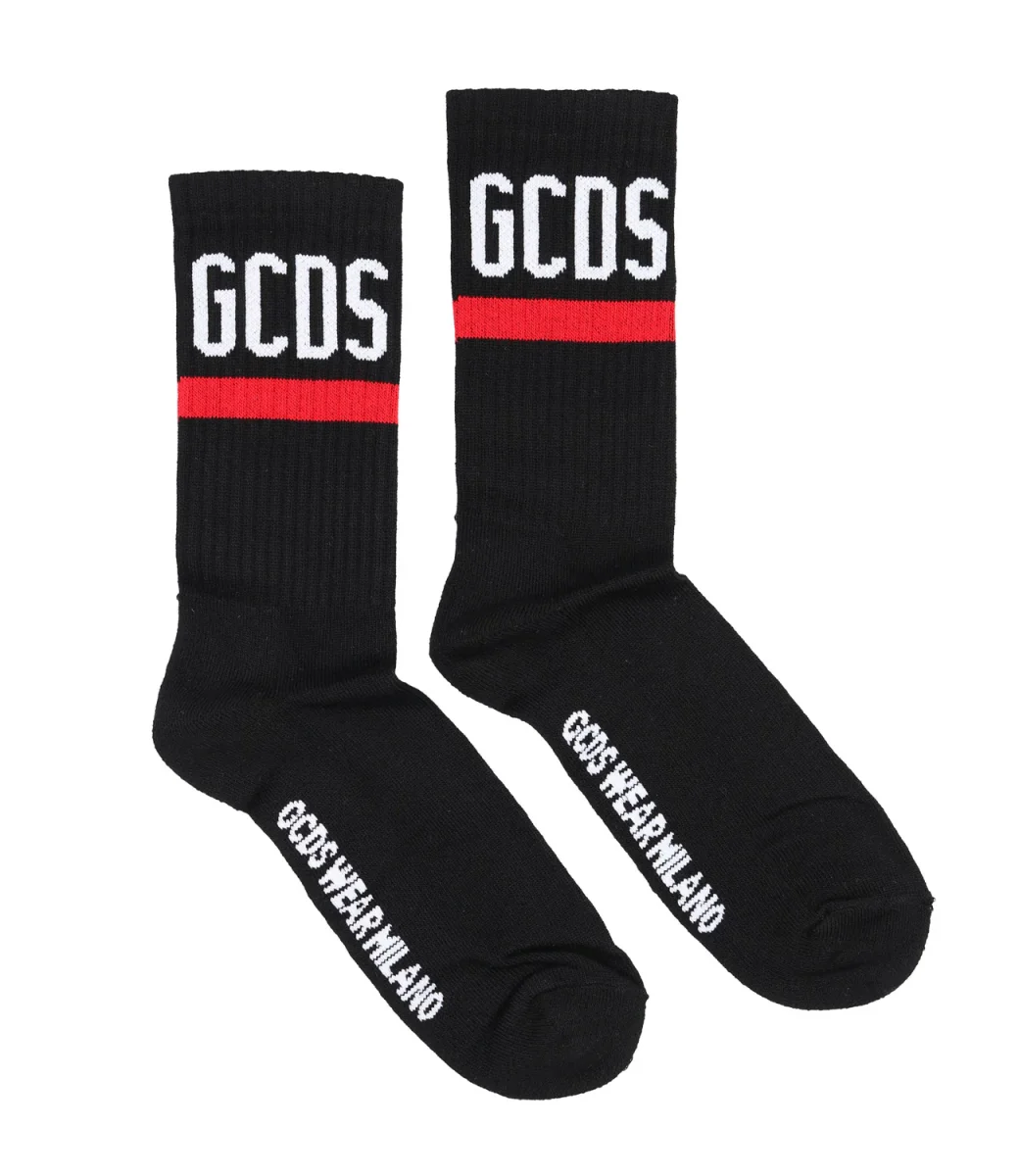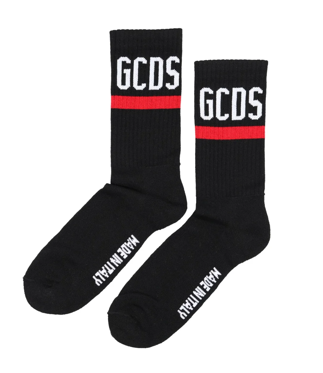 Calzini GCDS in cotone nero con logo GCDS intarsiato sui lati.