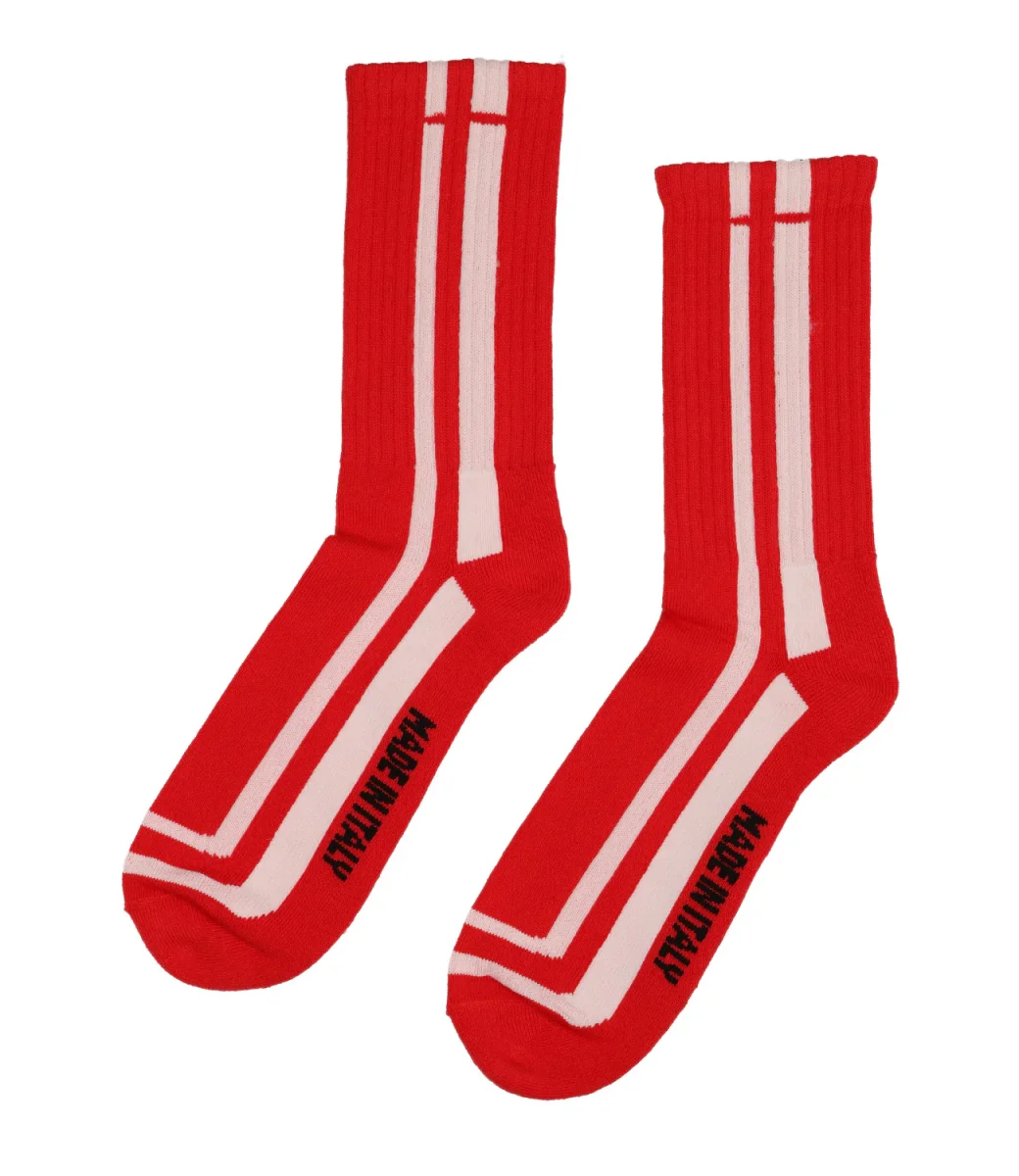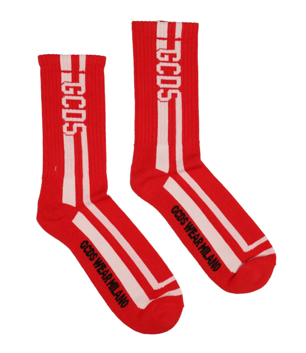 Calzini bianco con logo GCDS in contrasto e doppia striscia verticale bianca