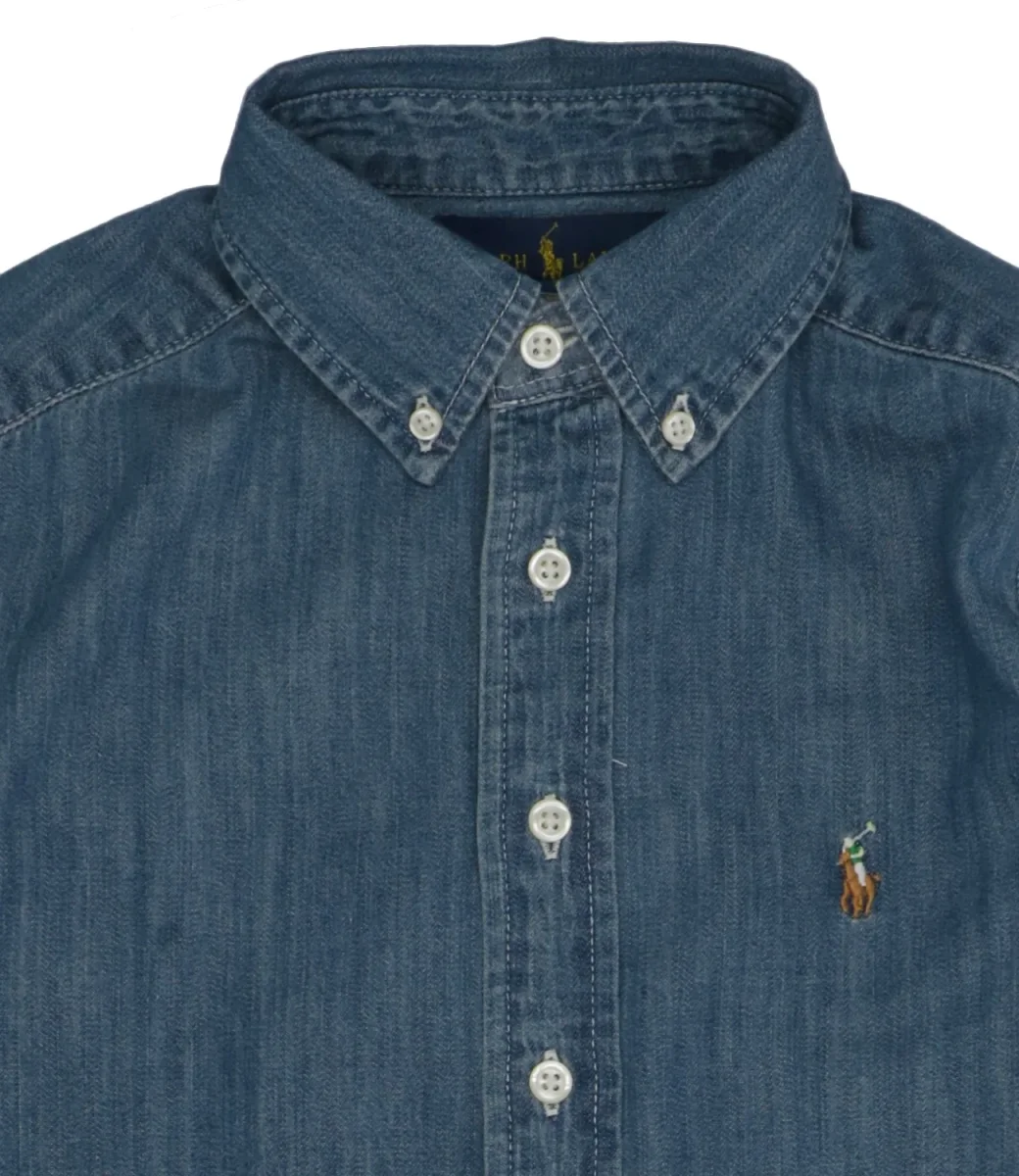 Questa camicia ha l’eleganza della nostra iconica Oxford ed è in grintoso chambray di cotone, nel classico stile Polo.