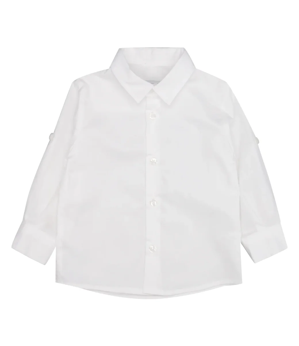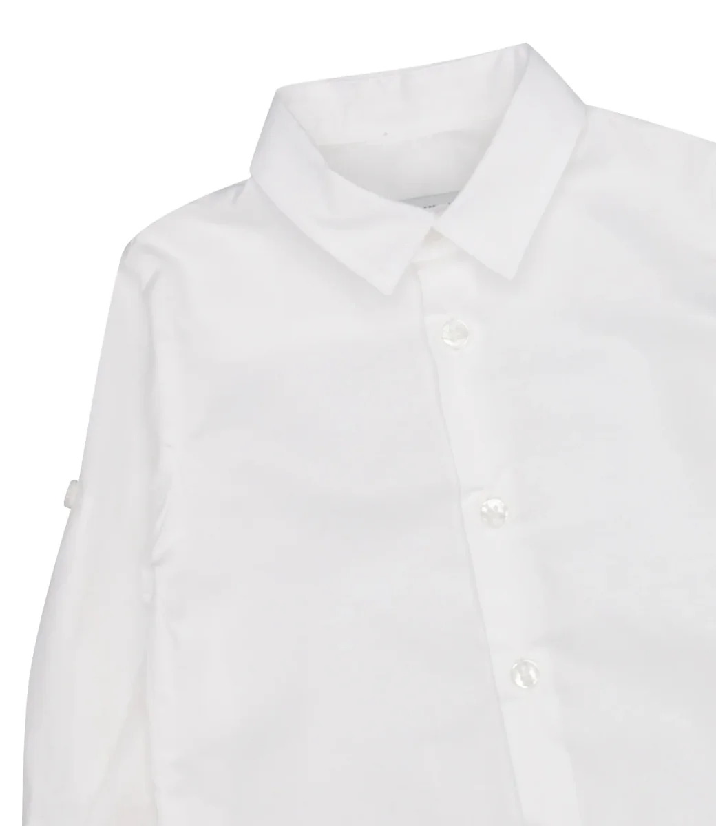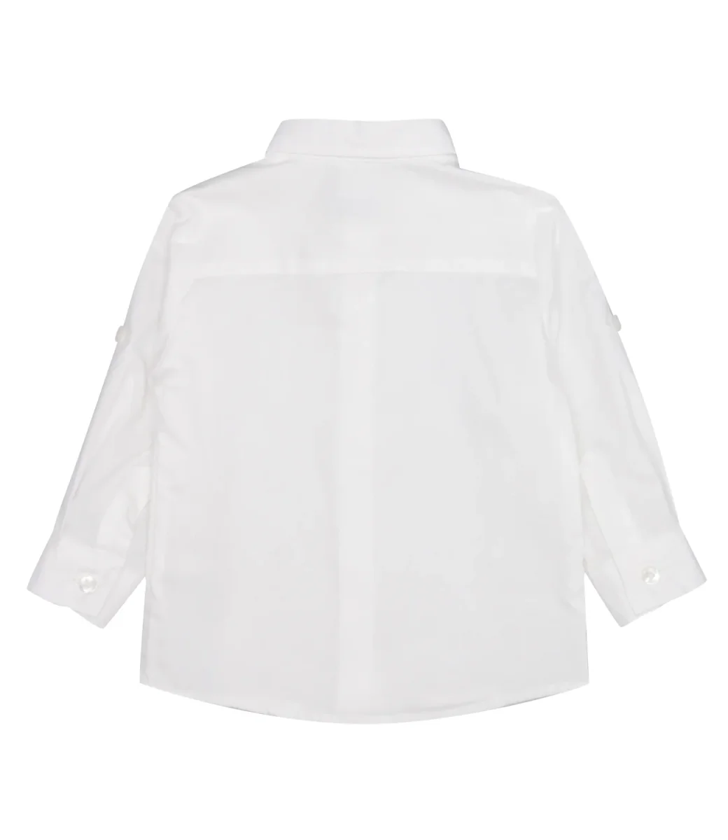 Camicia Carlo Pignatelli Junior in cotone, collo classico a punta, chiusura frontale con bottoni, maniche con polsini e bottone e lunghezza regolabile con bottone applicato sulla parte alta, pieghe cucite sul retro.