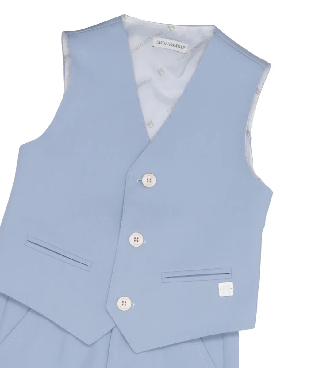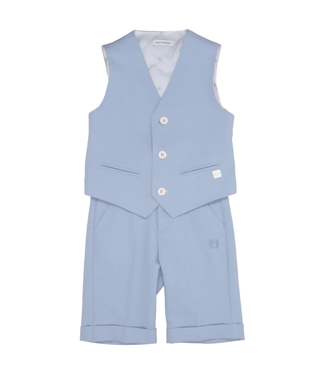 Set gilete bermuda Carlo Pignatelli Junior. Gilet smanicato con scollo a V, chiusura frontale con bottoni. Bermuda con vita regolare e risvolto al fondo.