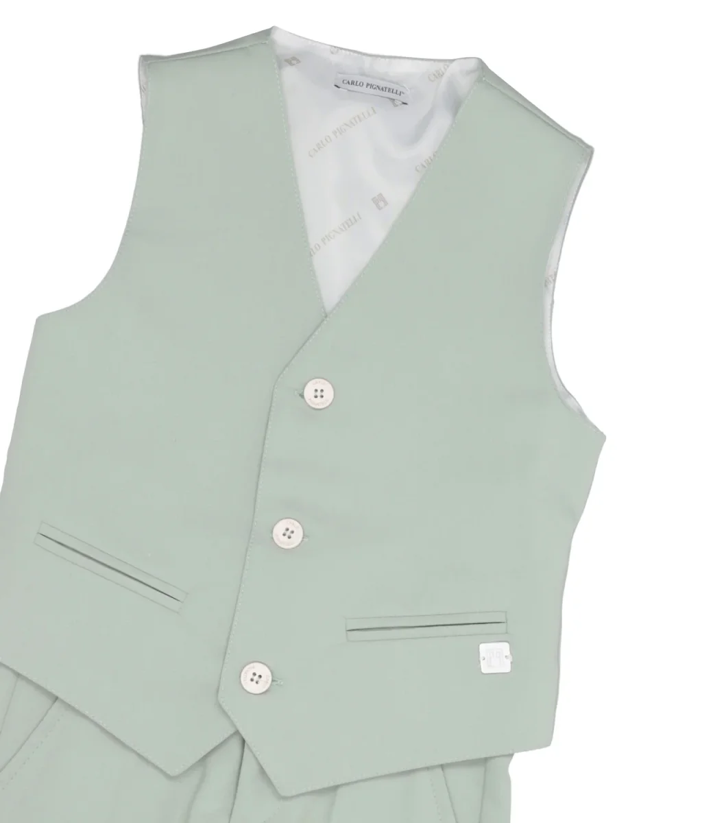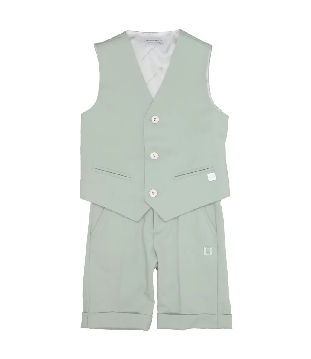Set gilete bermuda Carlo Pignatelli Junior. Gilet smanicato con scollo a V, chiusura frontale con bottoni. Bermuda con vita regolare e risvolto al fondo.
