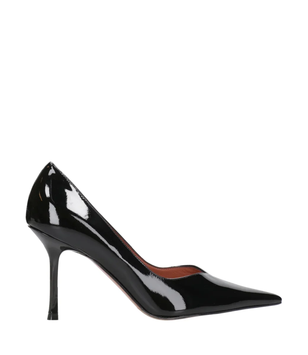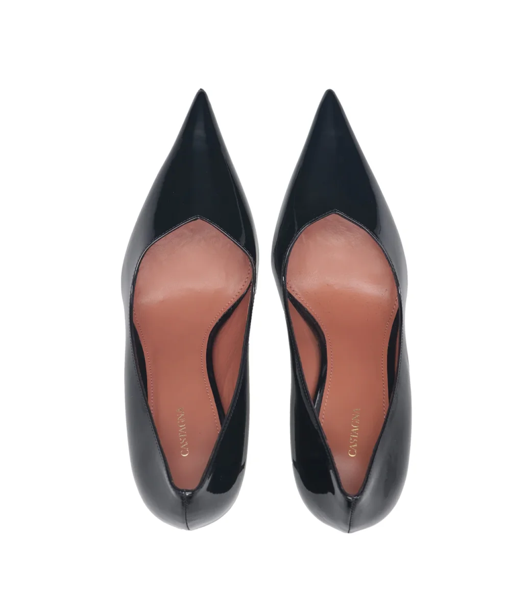Decolleté Castagna Anya in finish vernice, design a punta e tacco a stiletto rivestito.