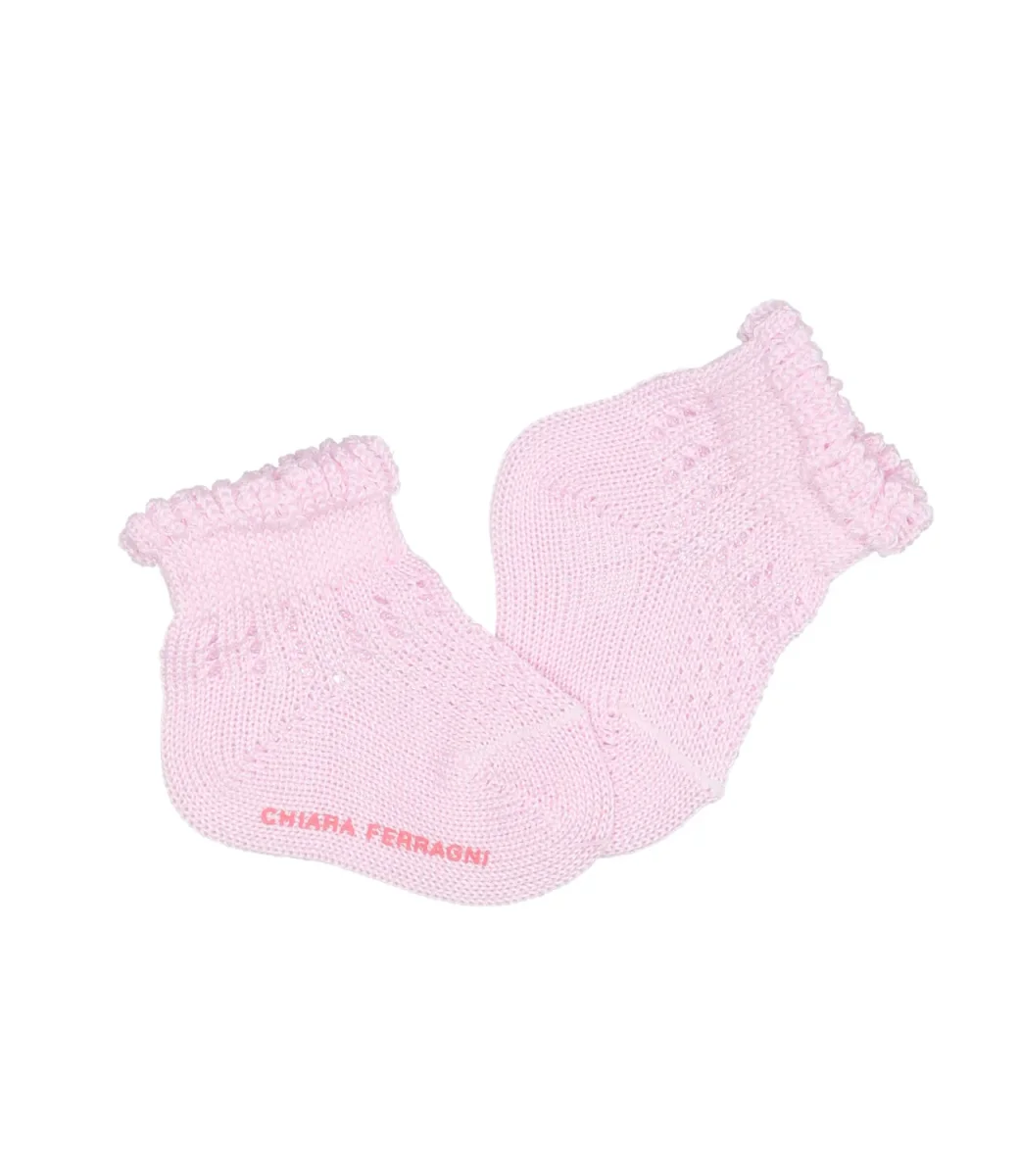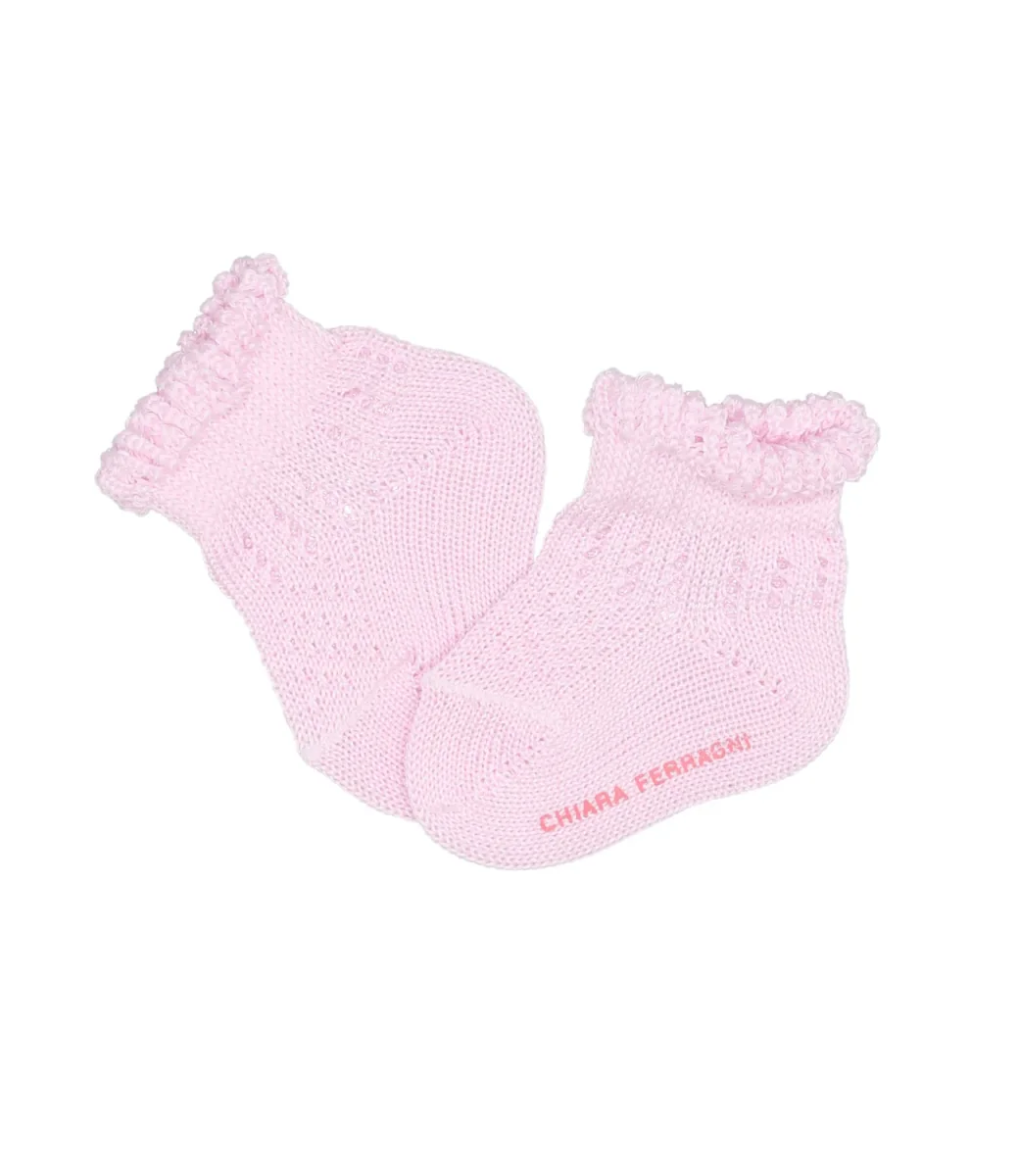 Calzini Chiara Ferragni Kids in filo di Scozia rosa, con ricamo traforato, arricciatura sulla caviglia, tallone e punte evidenziate