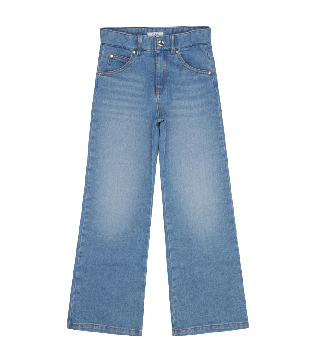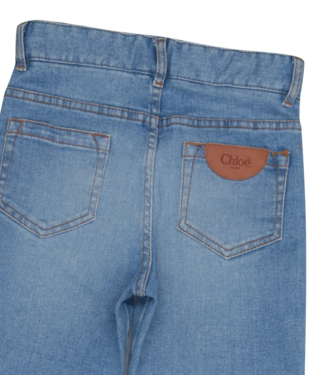 Jeans Chloè Kids in denim di cotone stretch. Design che garantisce un look alla moda anche per i bambini.