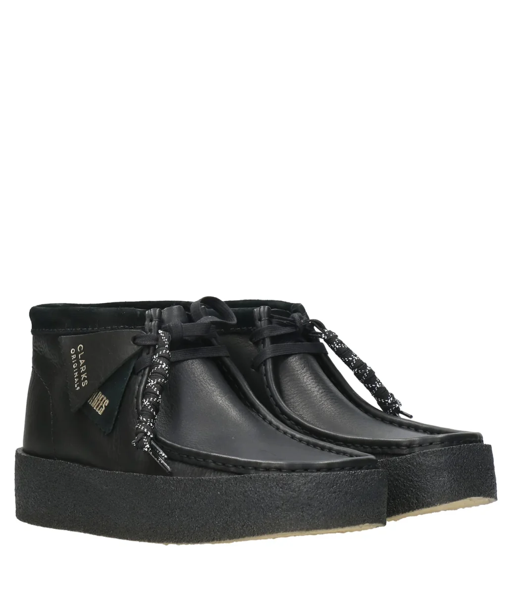 Il modello Wallabee Cup Boot in nabuk bianco avorio, new entry delle icone Originals, presenta lacci con perline e targhette a contrasto per un abbinamento di colore classico e vivace. La suola spessa in para dalle proporzioni perfette è naturale, a complemento di un’autentica icona invernale.