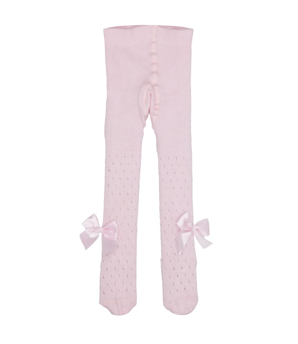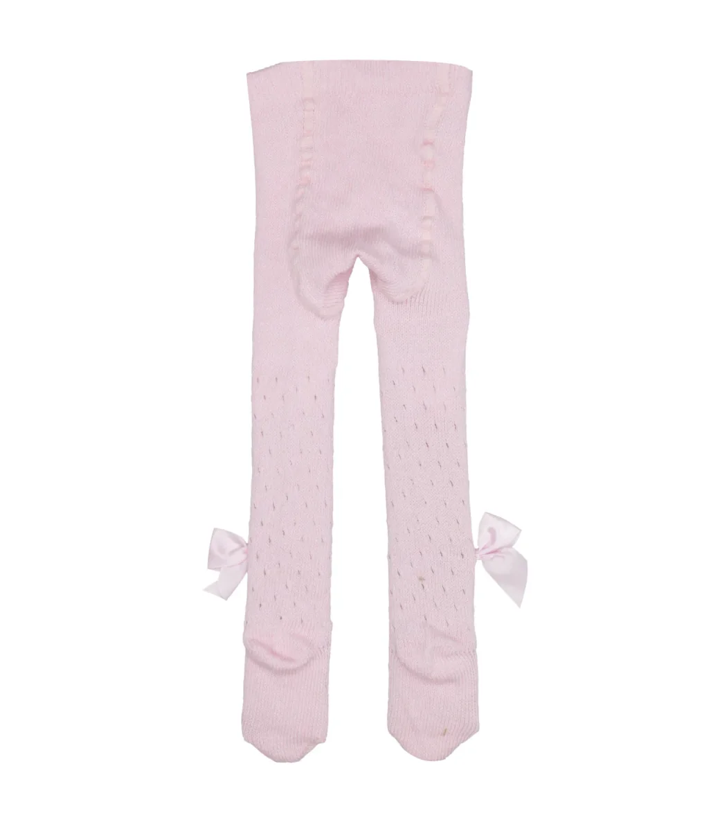 Collant Coccoli in cotone, vita elasticizzata, motivo traforato, fiocco in raso applicato sul laterale.