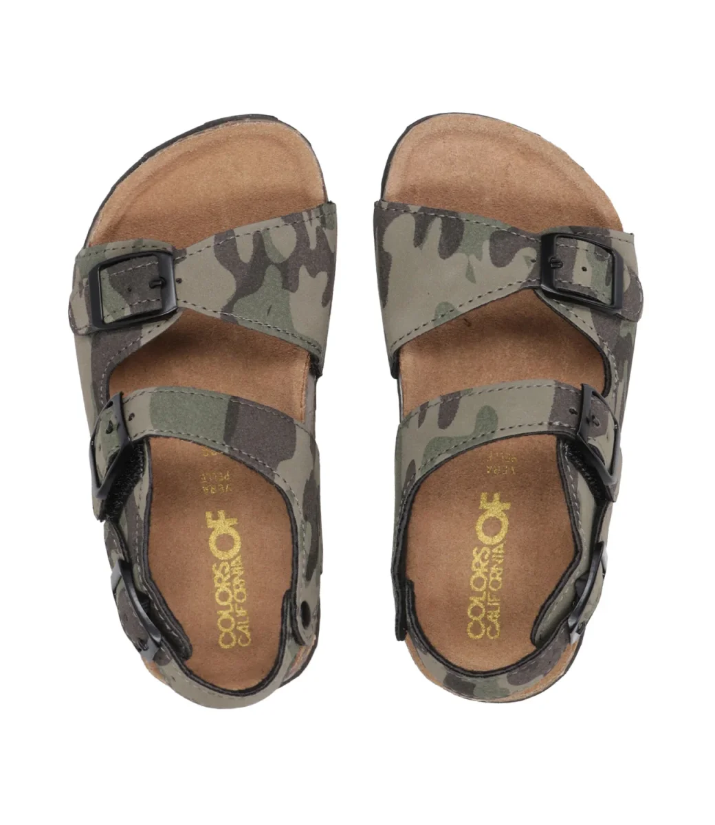 Sandalo Colors of California Kids Buckles in pelle, modello con tre fasce e fondo anatomico.
