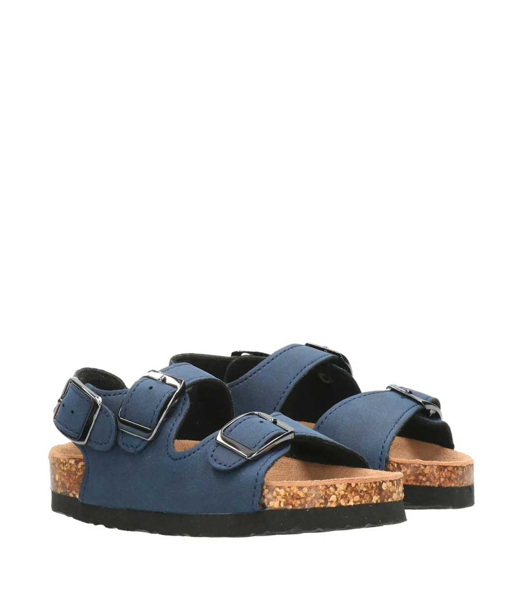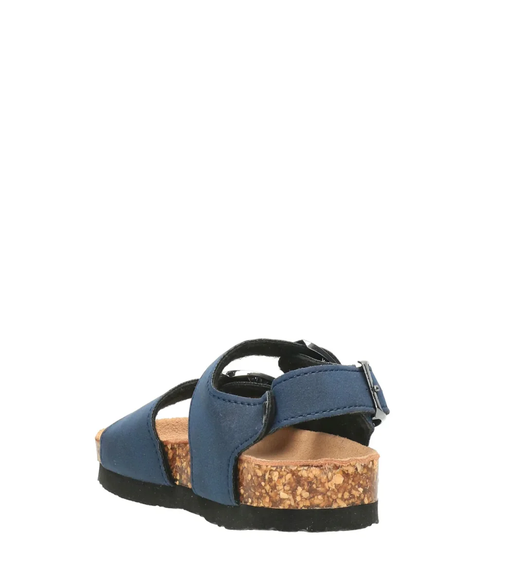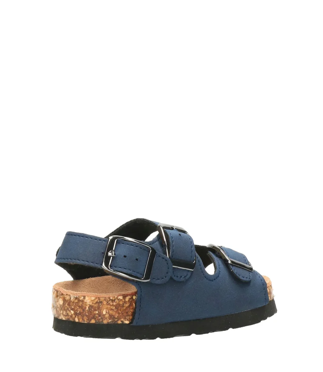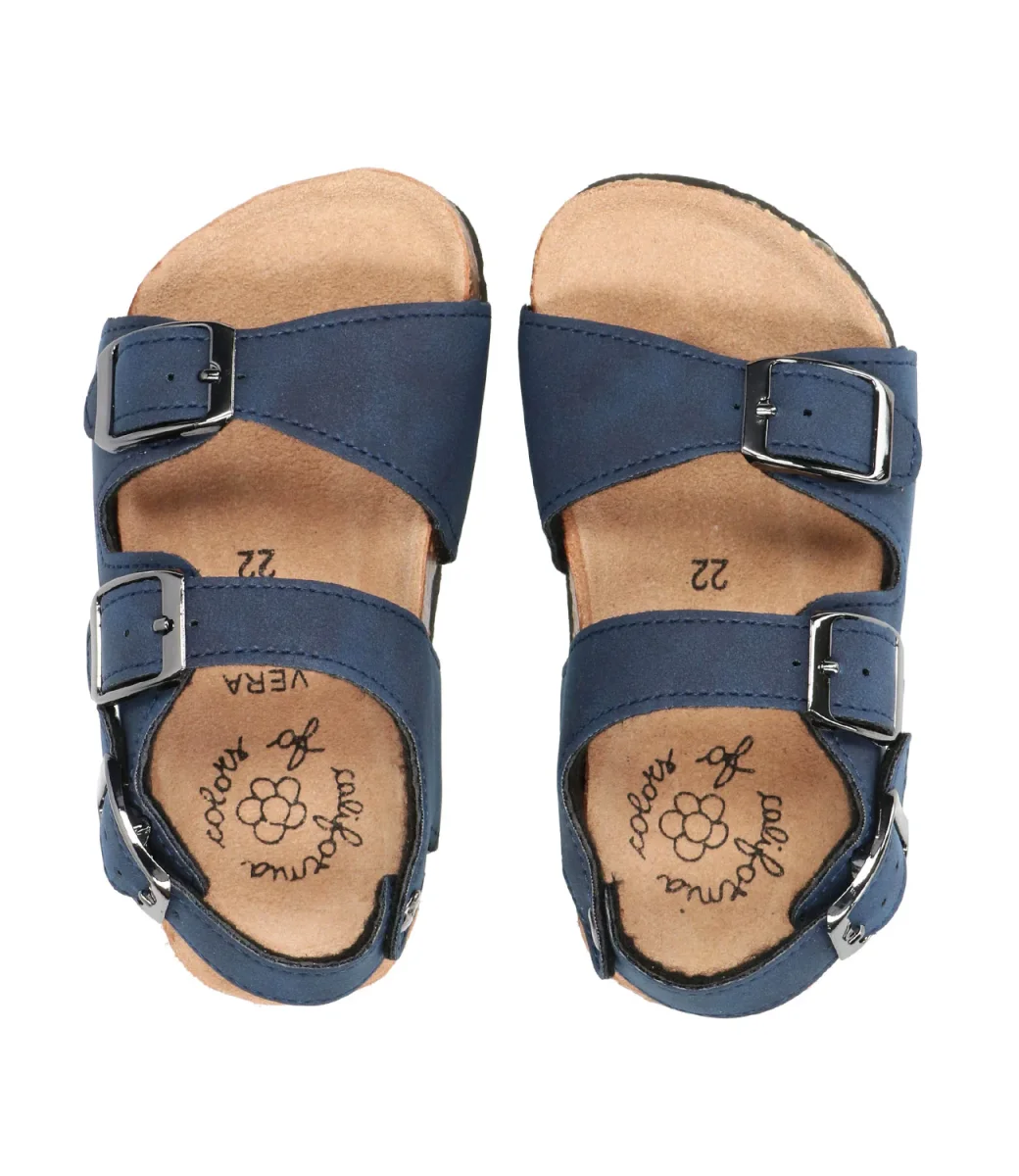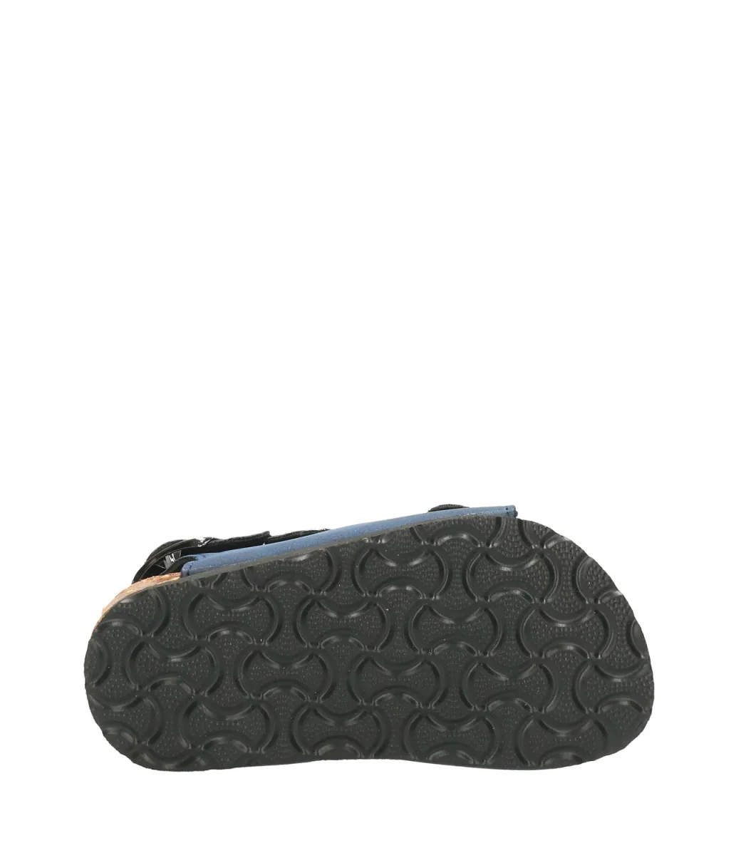 Sandalo Colors of California Bio in pelle scamosciata blu, tre cinturini regolabili, soletta fussbett in suede e suola in gomma, pratico e funzionale senza rinunciare allo stile.