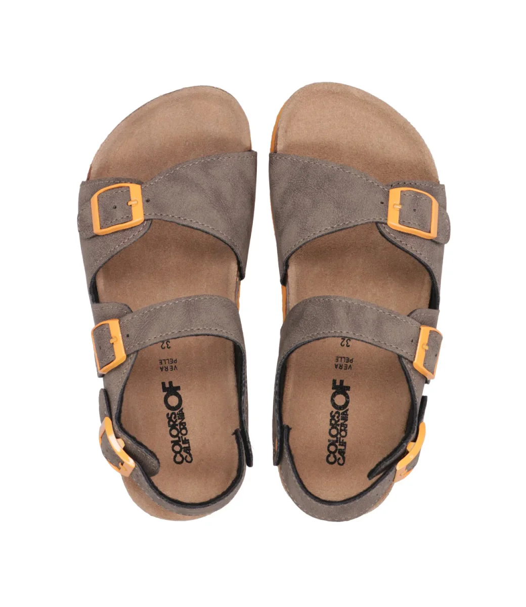 Sandalo Colors of California Bio in pelle scamosciata ta, tre cinturini regolabili, soletta fussbett in suede e suola in gomma, pratico e funzionale senza rinunciare allo stile.