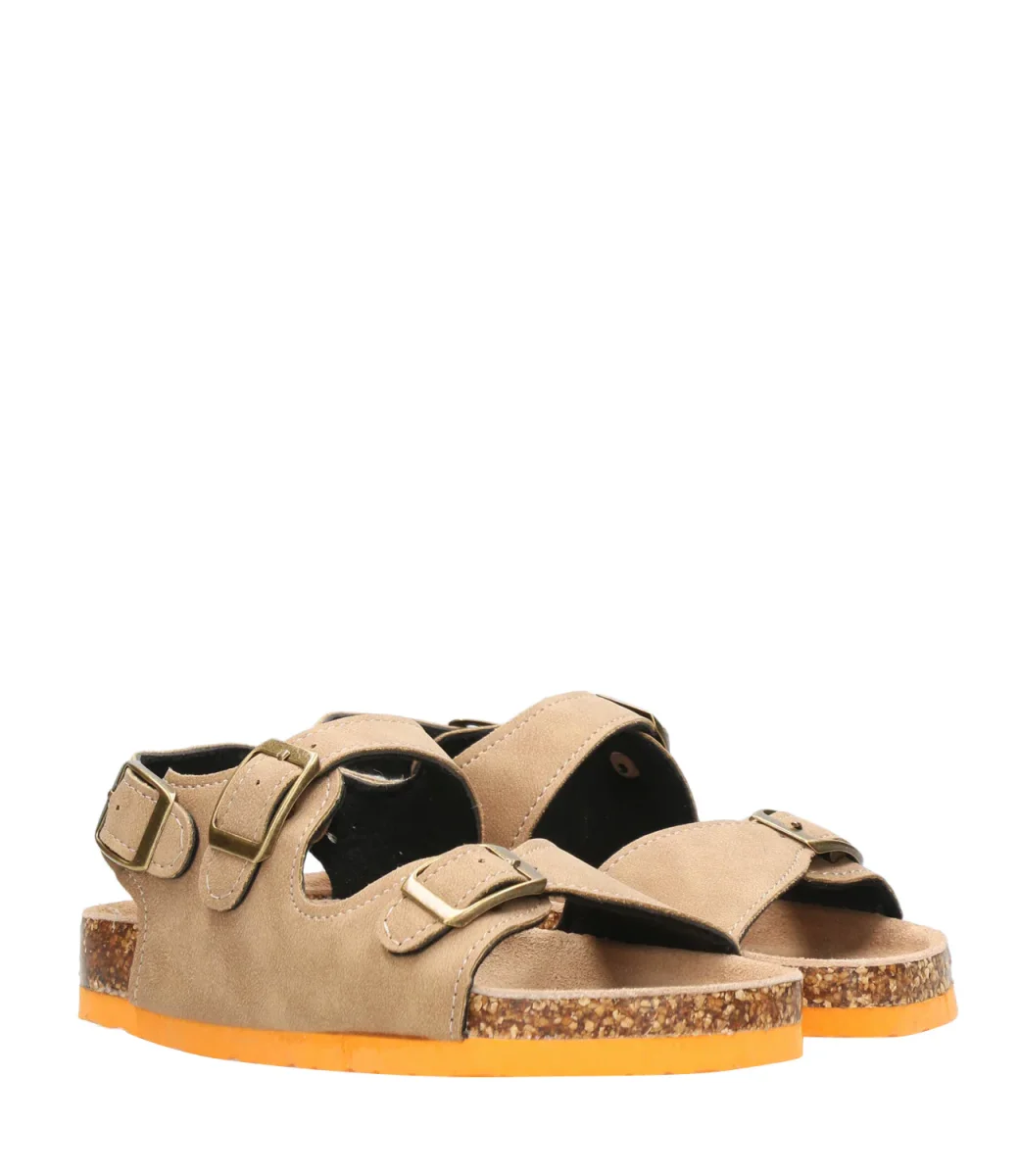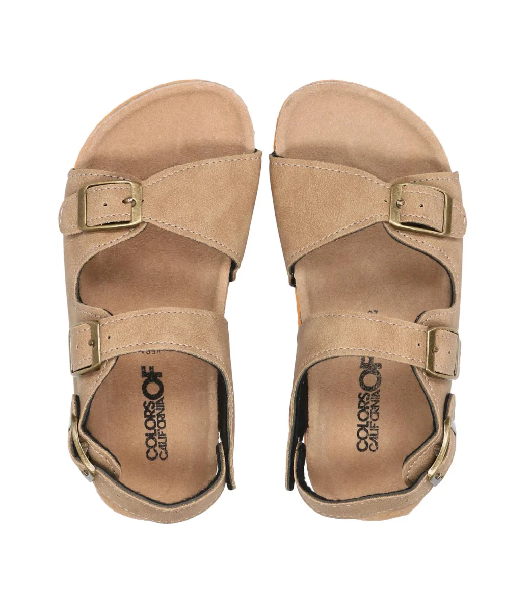 Sandalo Colors of California Bio in pelle scamosciata ta, tre cinturini regolabili, soletta fussbett in suede e suola in gomma, pratico e funzionale senza rinunciare allo stile.