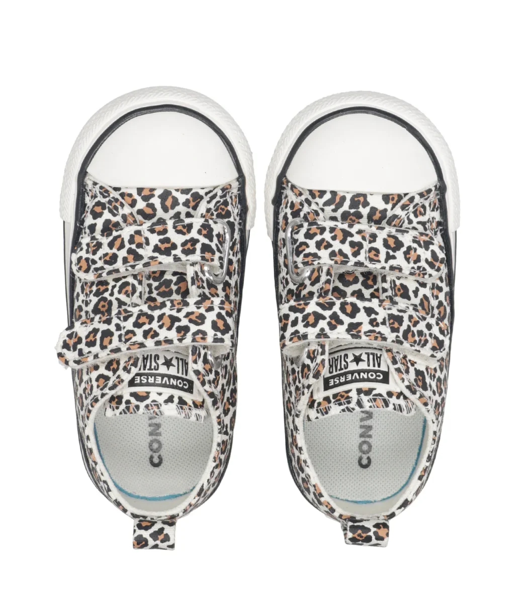 Sneakers Converse Kids Ctas 2V Ox modello basso con chiusura con velcro. Design classico in tela con fondo iconico.