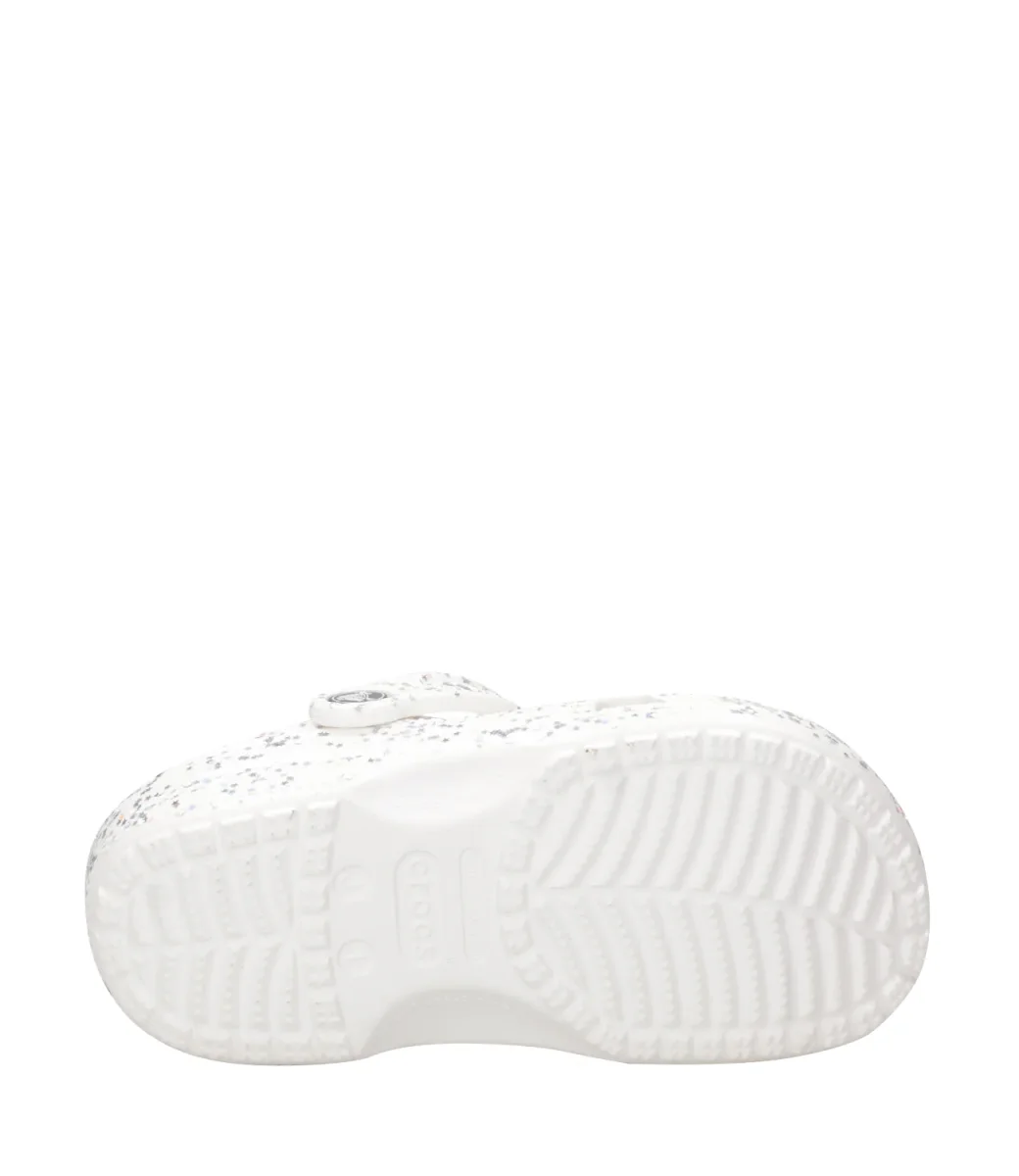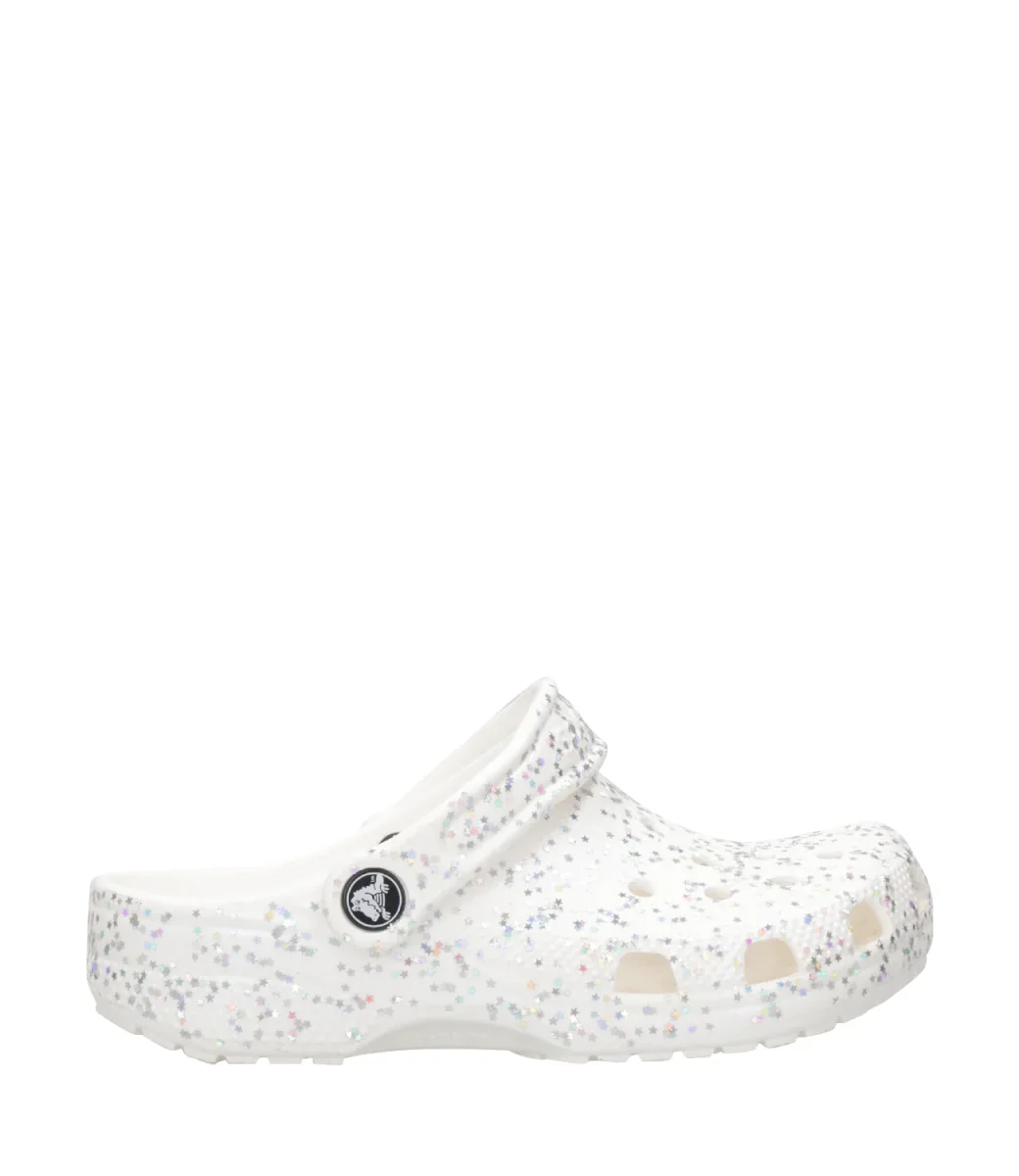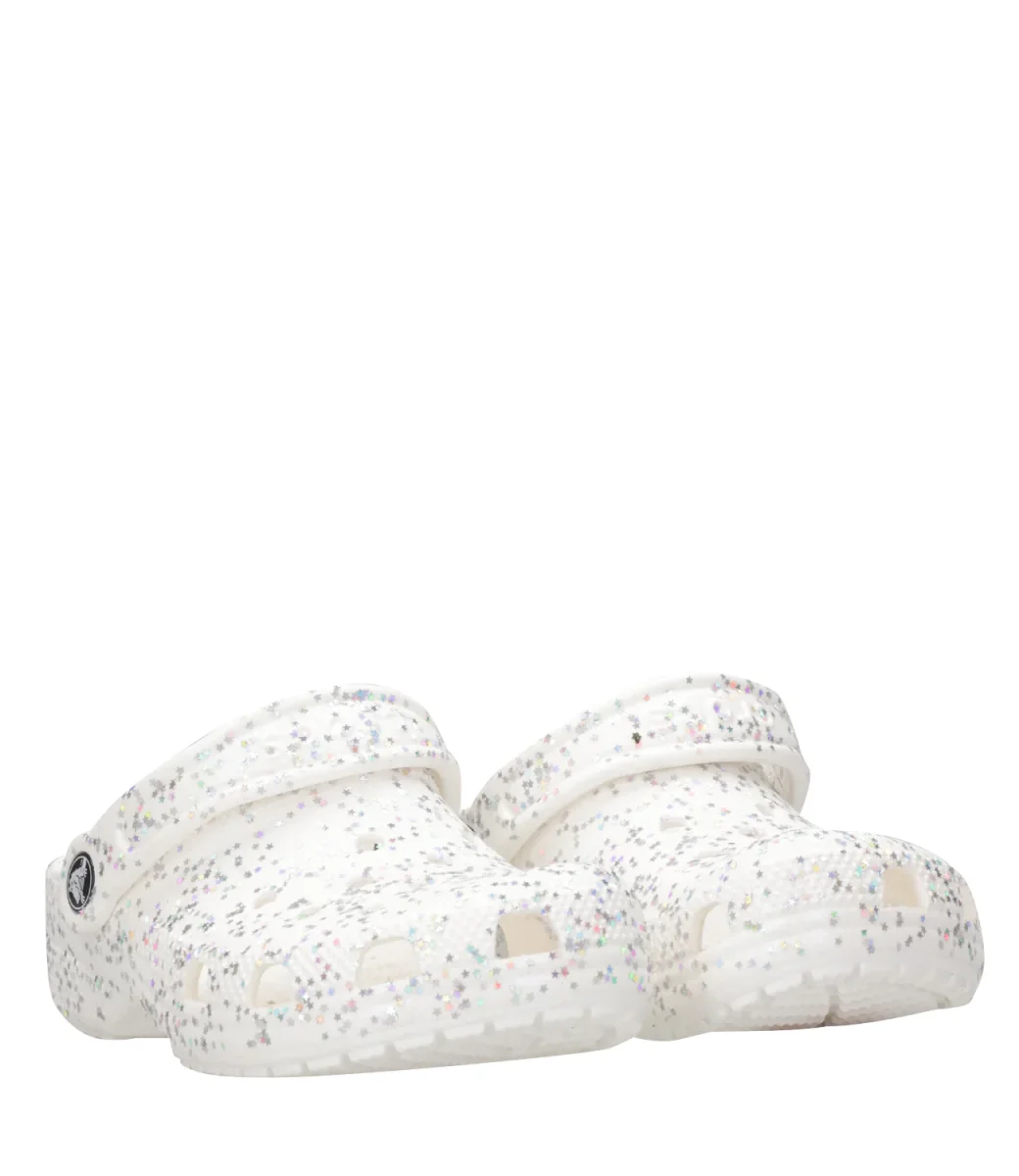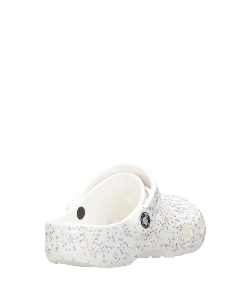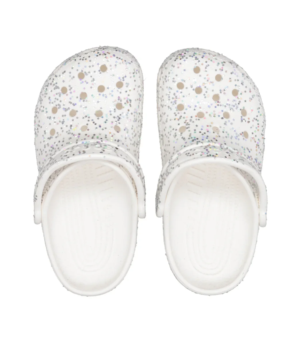 Sabot Crocs Kids Classic Starry Glitter Clog K, struttura in leggera schiuma Croslite™, con decoro di stelle argentate iridescenti e glitterate,