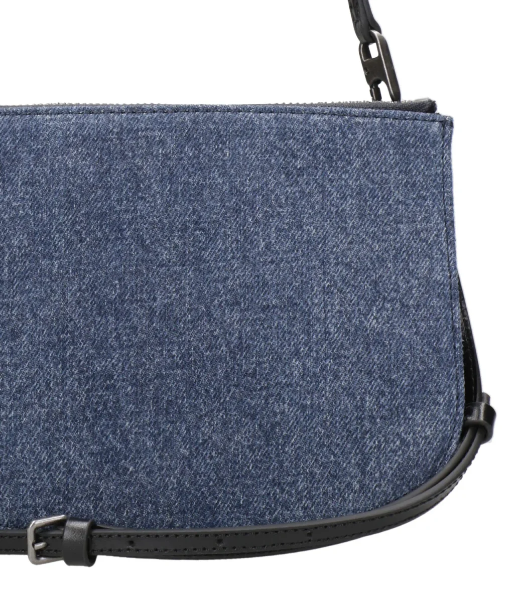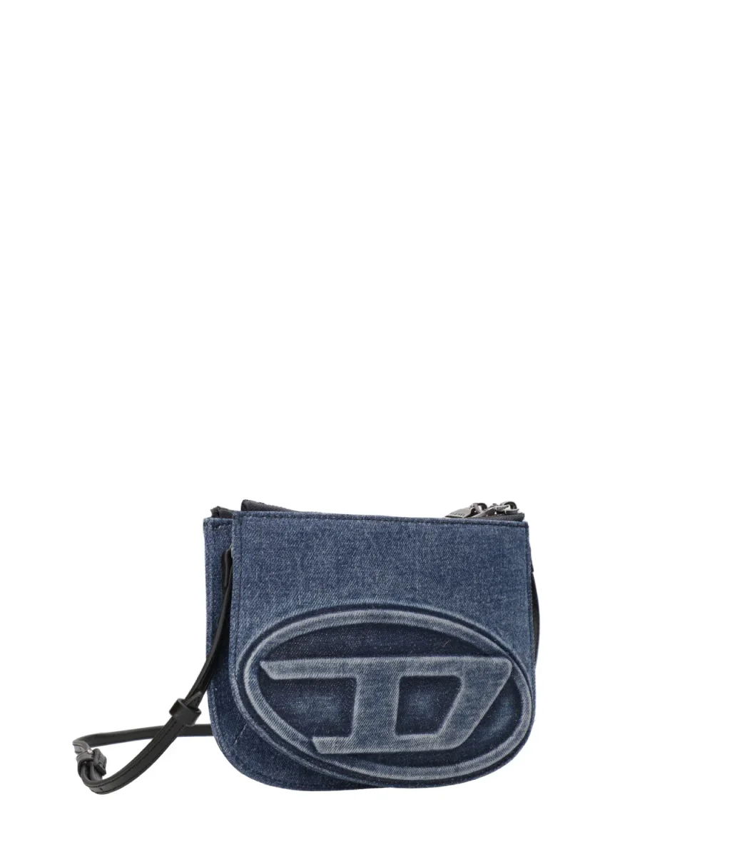 Borsa a spalla Diesel 1DR realizzata in denim con trattamenti distressed per un effetto used con rifiniture in pelle. Silhouette super slim ed iconico logo Oval D in rilievo sul davanti.