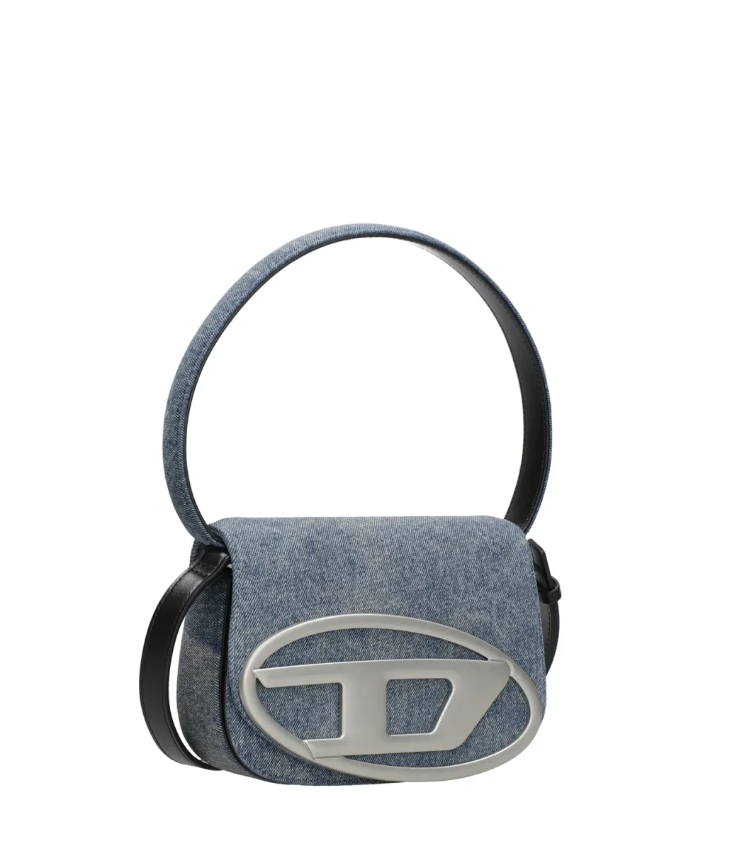 Borsa a spalla Diesel 1DR realizzata in denim con trattamenti distressed per un effetto used con rifiniture in pelle. Iconica placca Oval D. Modello a mano con possibilità di ripiegare il manico all’interno o con tracolla regolabile e rimovibile. Chiusura con patta e magnete.