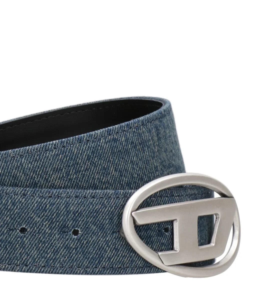 Cinta Diesel Oval D Logo B-1Dr realizzata in denim con fibbia con logo oval D in metallo lucido nickel-free.