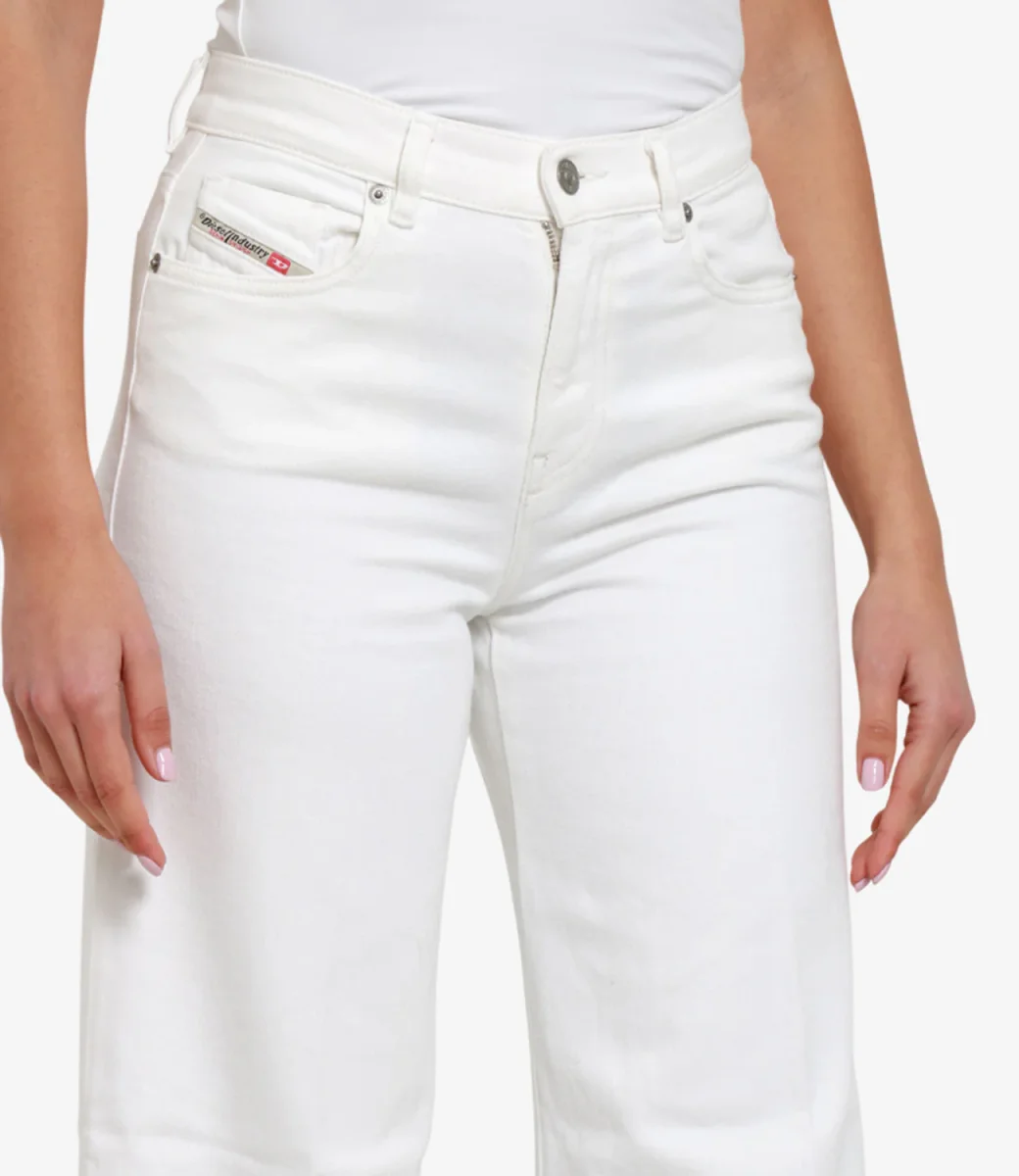 Jeans Diesel modello 1978 D-Akemi in denim di cotone. Silhouette aderente sui fianchi che si allarga dalla coscia fino alla caviglia per creare un distintivo taglio svasato. Diesel in cotone sostengono la produzione di materia in modo responsabile grazie alla missione Better Cotton.