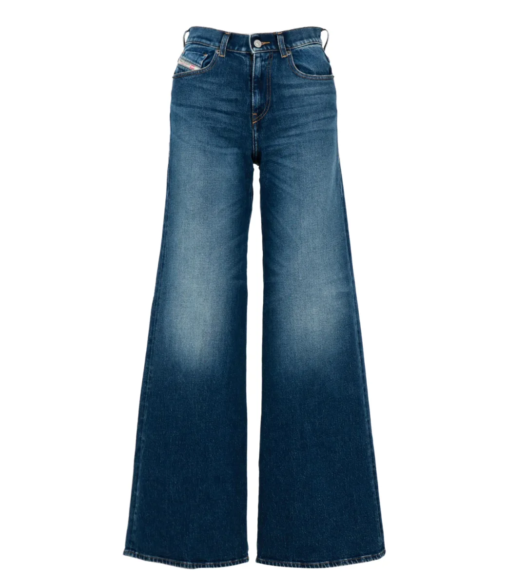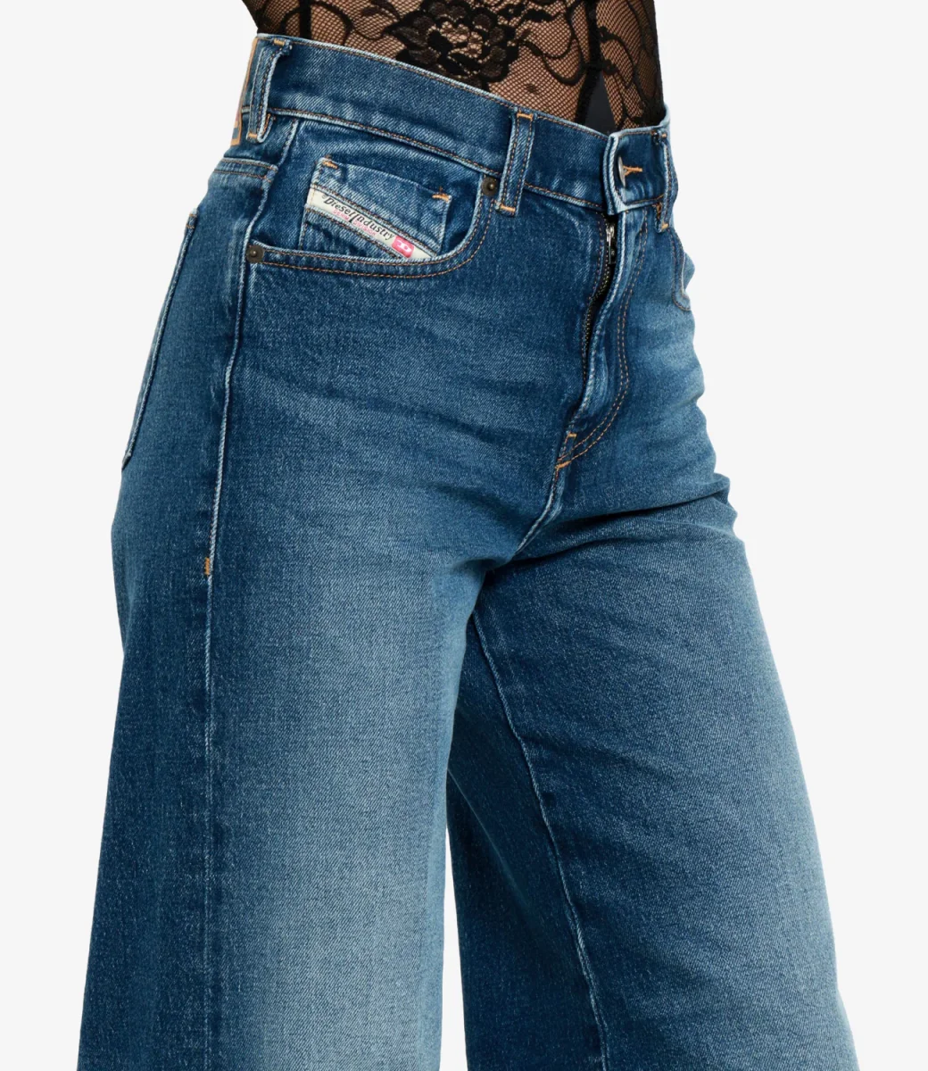 Jeans Diesel 1978 D-Akemi in denim realizzato con una combinazione di cotone biologico e TENCEL™ Lyocell per una sensazione morbida e fluida. Modello Flared fit aderente in vita e più morbido dalla coscia alla caviglia.