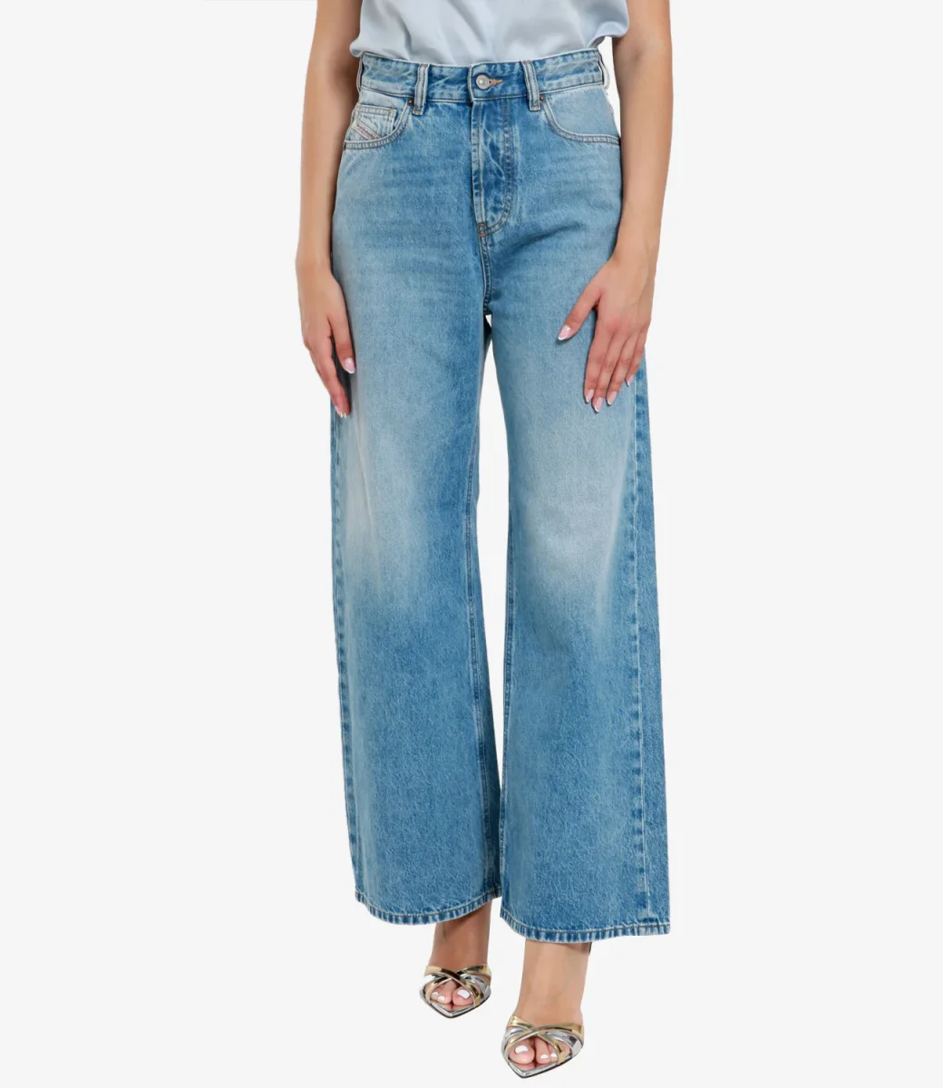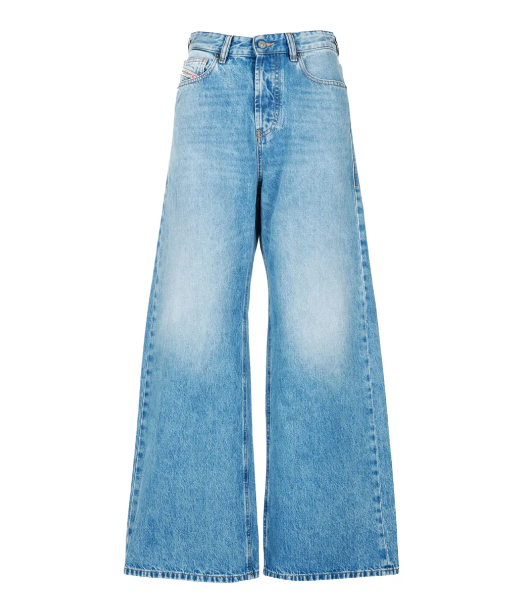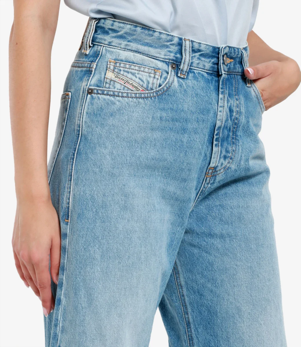 Jeans Diesel in denim medio 1996 D-Sire. Modello loose con vita bassa e gamba larga che esprime un mood rilassato, ispirato ai jeans degli anni 90. Presenta un lavaggio azzurro chiaro con una finitura pulita.