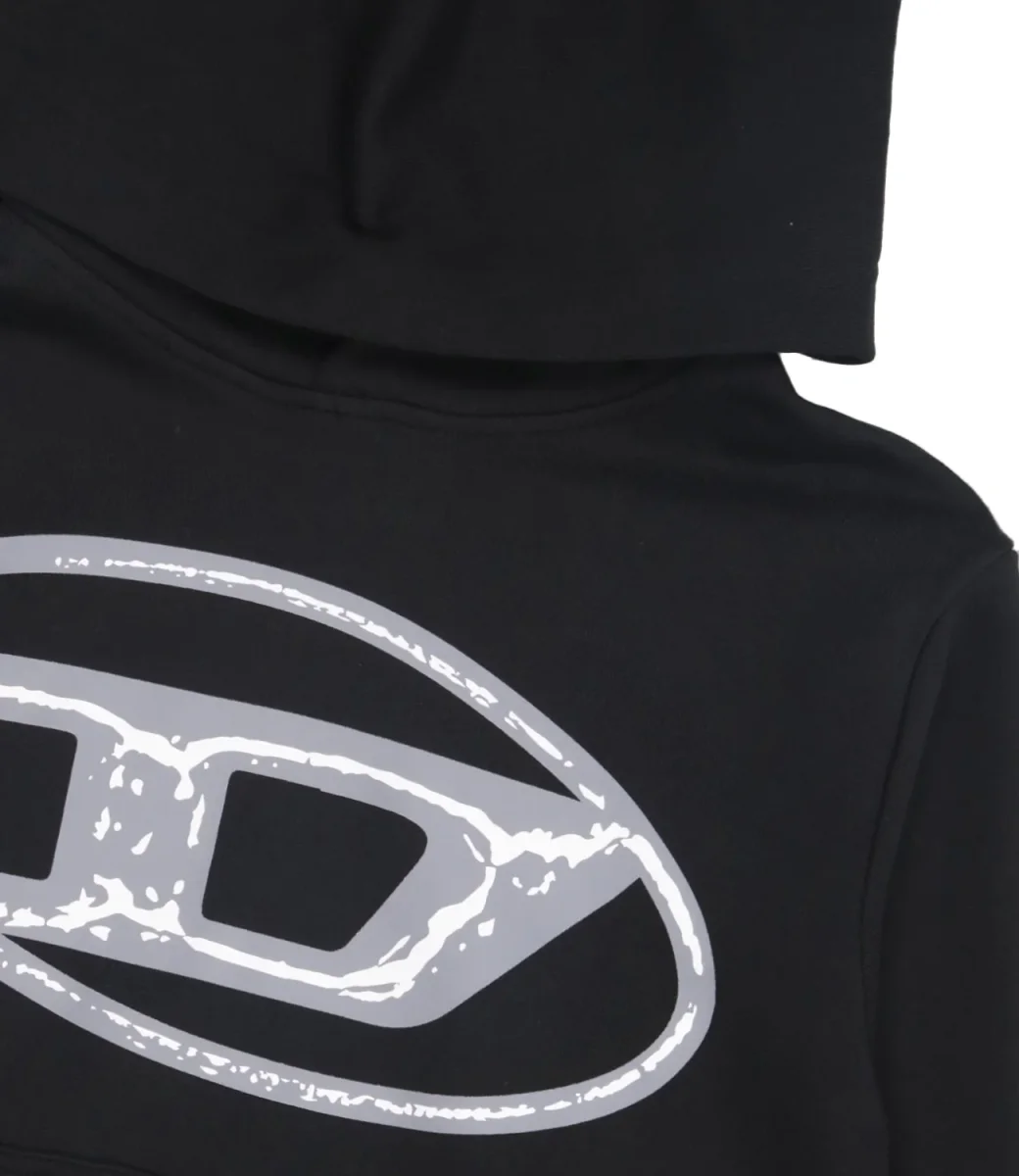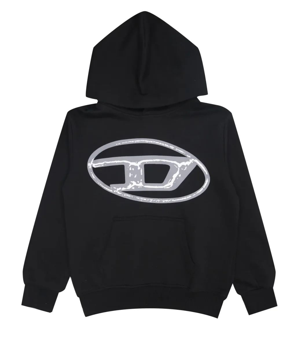 Felpa Diesel Kids Sbonniehood over in misto cotone, con cappuccio, maxi logo Oval D stampato a contrasto sul davanti.