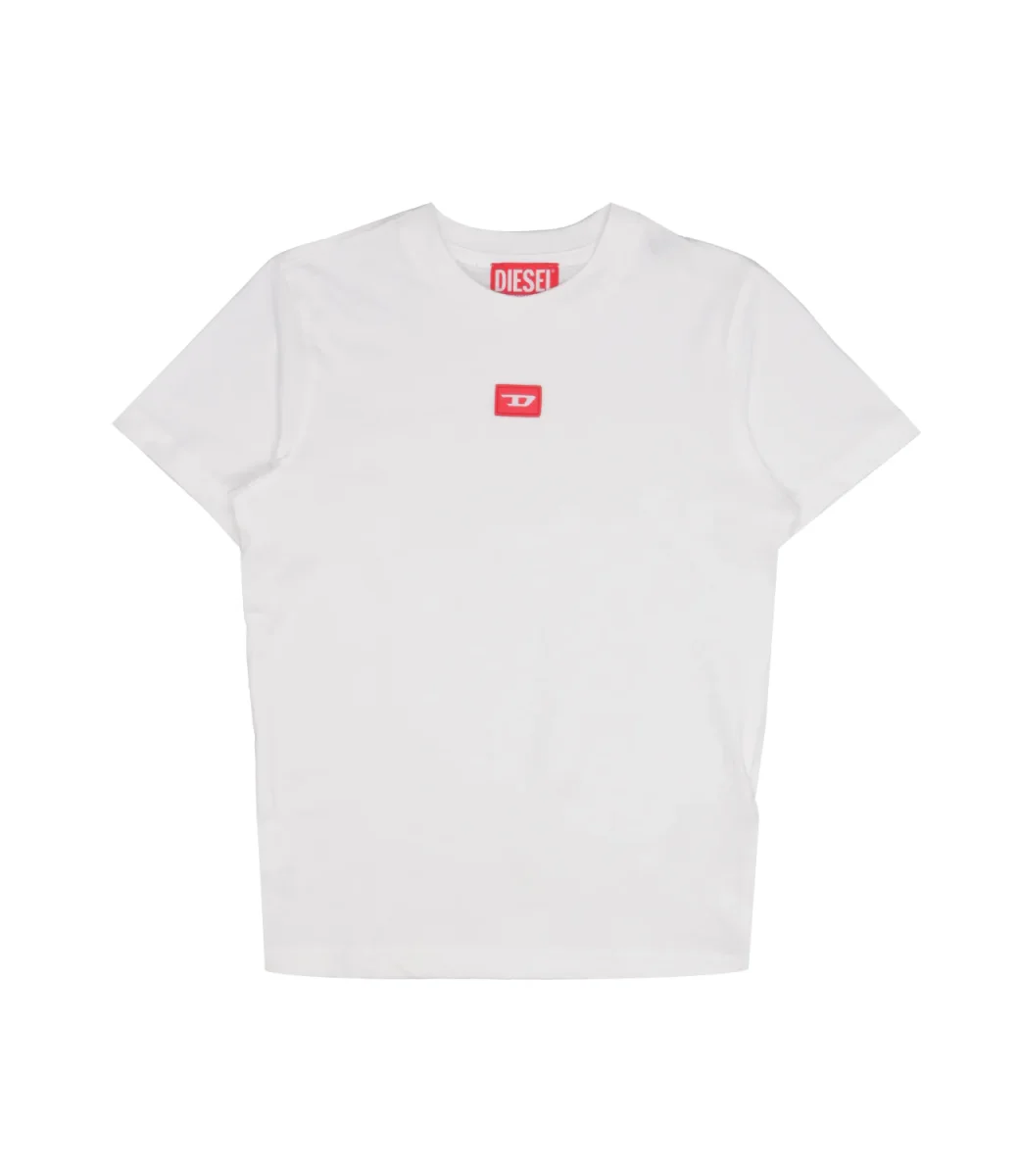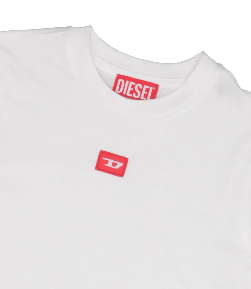 T-Shirt Diesel Kids Txdiego in jersey di cotone. Girocollo, maniche corte, logo patch rettangolare applicato a contrasto sul torace.