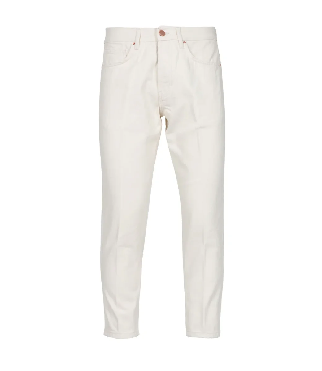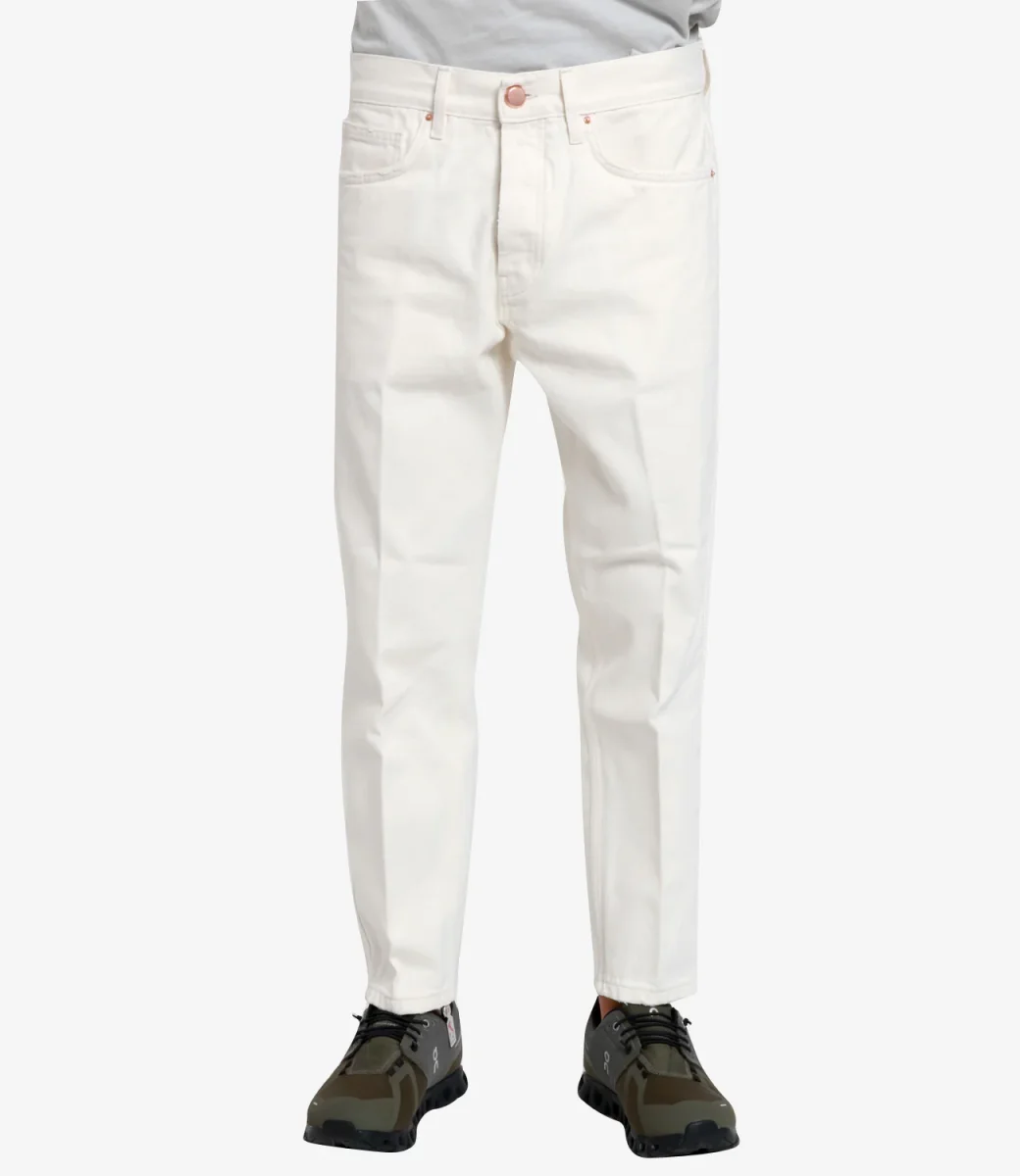 Jeans Don The Fuller Seoul in denim, modello cinque tasche, linea morbida sui fianchi con cavallo leggermente ribassato e la gamba che si stringe all’altezza delle caviglie, vita media con passani, chiusura con bottoni, logo sul retro. Made in Italy
