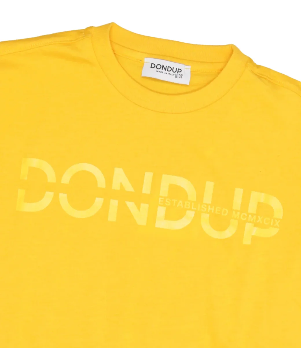 T-Shirt Dondup Junior in cotone giallo a girocollo con maniche corte, logo frontale, orlo elastico.