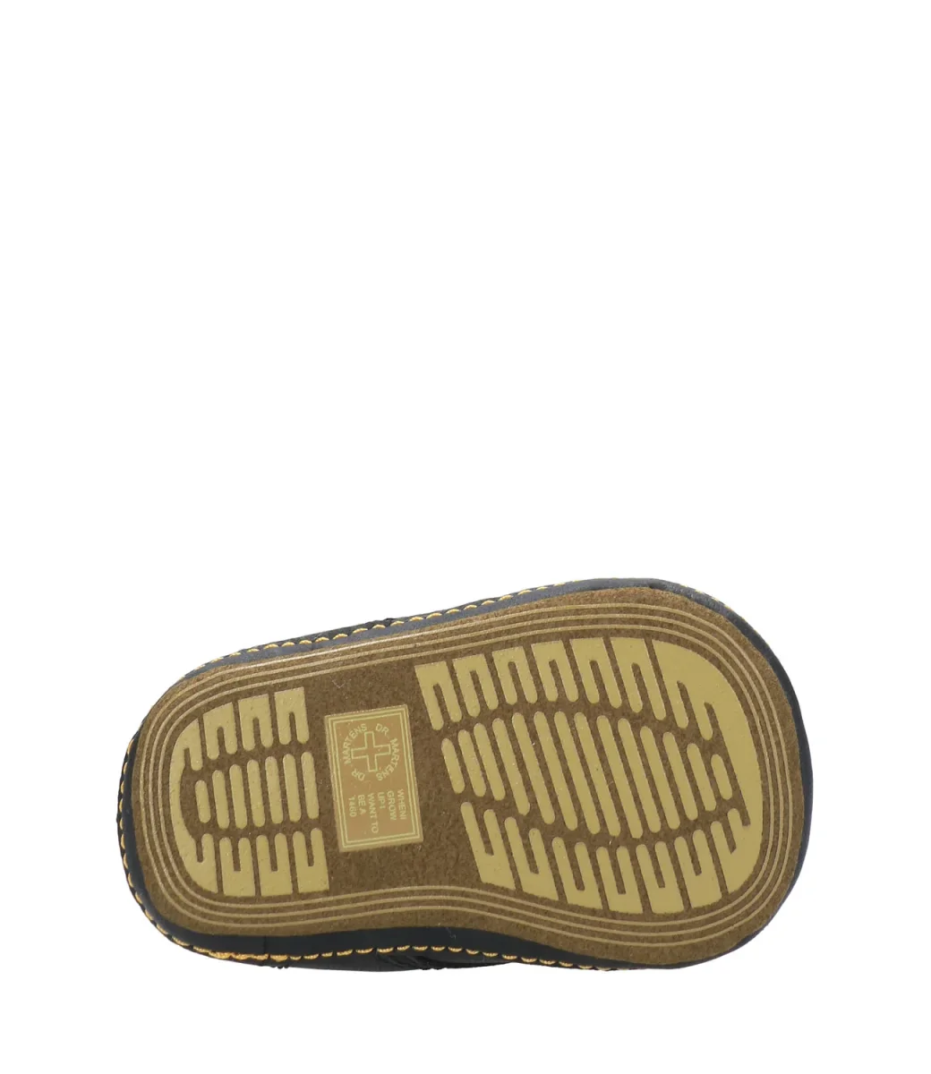Anfibio Dr Martens Kids 1460 Crib con 3 occhielli, realizzati in morbida pelle bianca per un comfort extra e una comodissima suola antiscivolo sono perfetti per i primi passi.