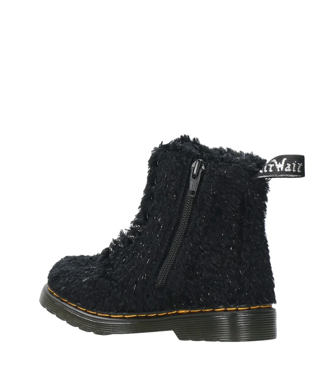 Gli stivali 1460 sono stati rielaborati inserendo la fodera in shearling borg all’esterno per conferire loro una consistenza morbida. Inoltre, il nuovo interno della fodera sintetica mantiene calore e comfort.