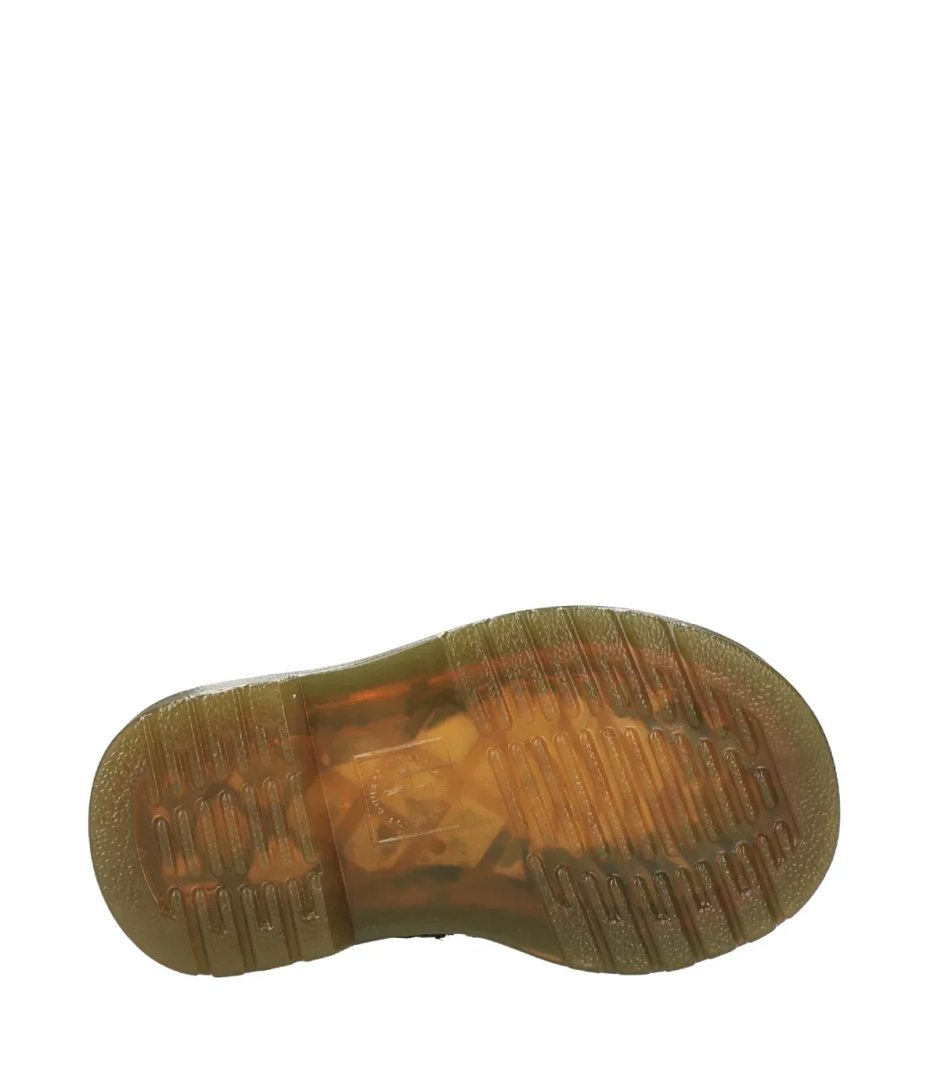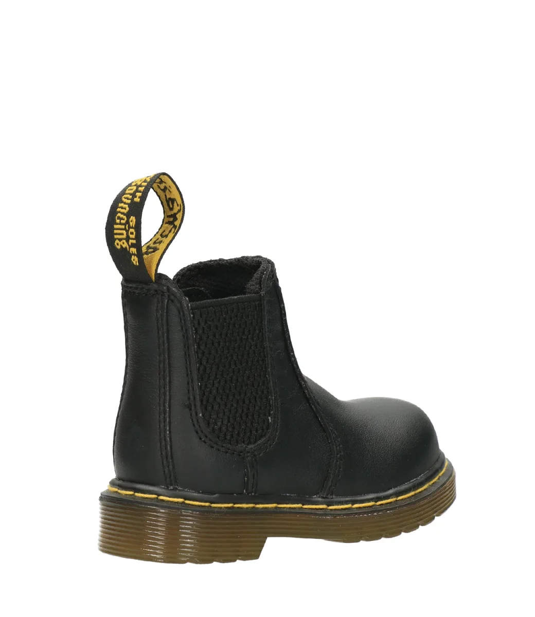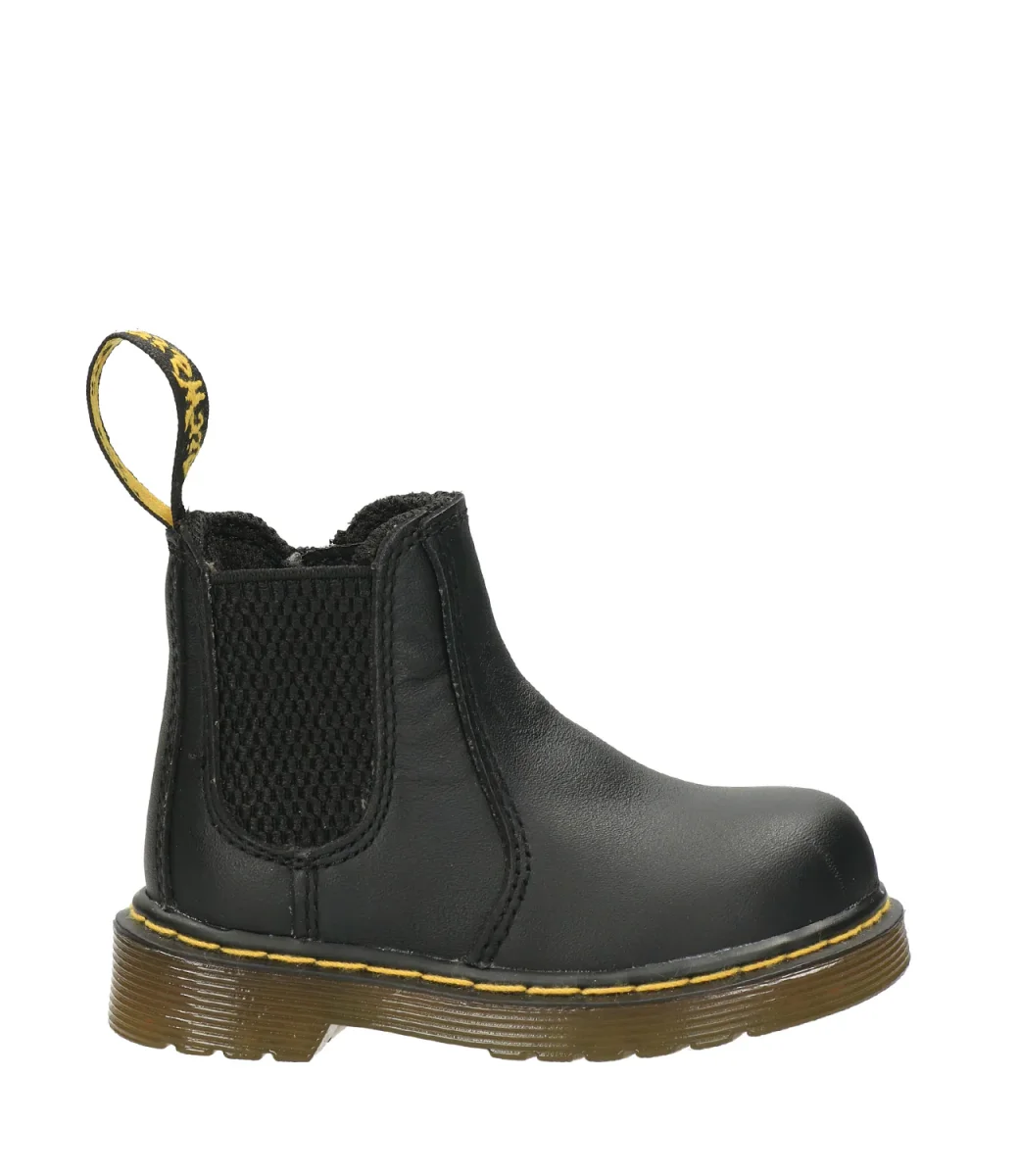 Beatles Dr Martens Kids 2976 Trealizzato in pelle pieno fiore morbido al tatto, inserto elastico laterale, chiusura con zip nel lato interno, suola con cuscinetto d’aria con scanalature laterali. Tirante in tessuto. Iconiche cuciture gialle.