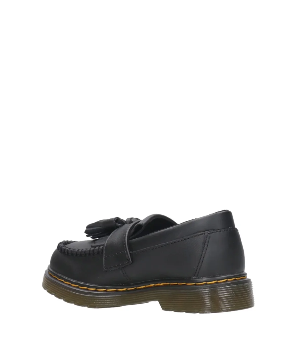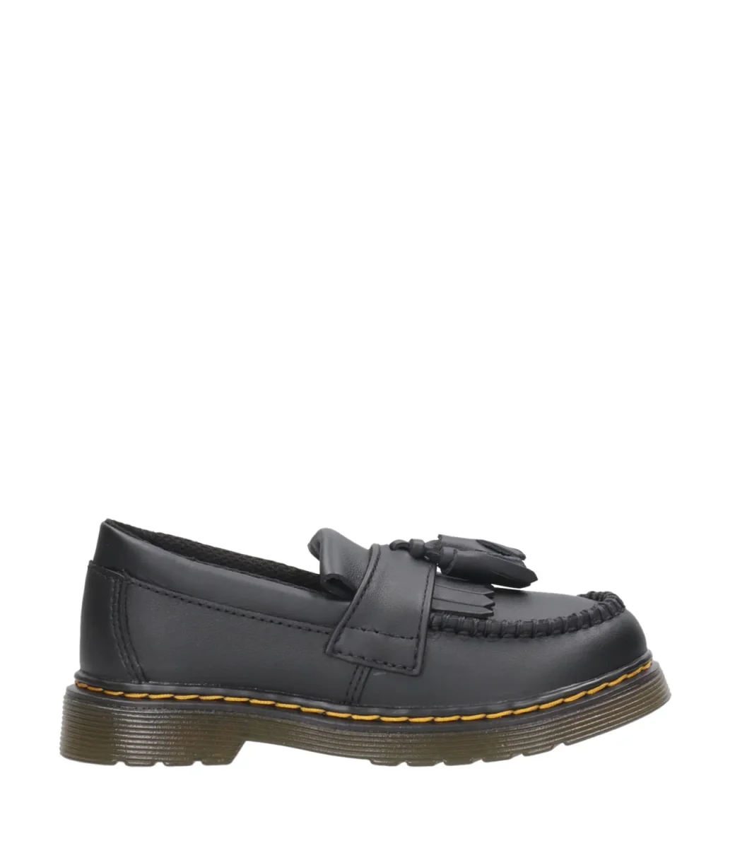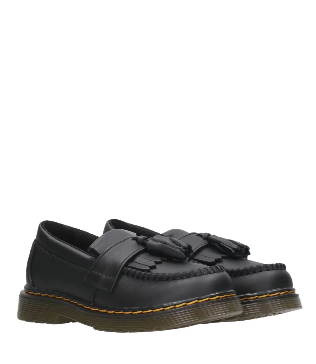 Mocassino Dr Martens Kids Adrian J realizzata in pelle con suola AirWair, con frangia kiltie ed iconiche cuciture gialle.