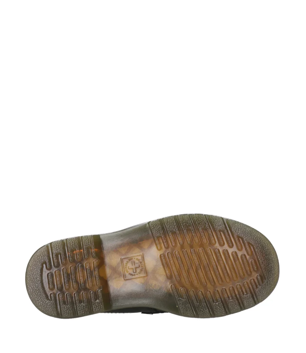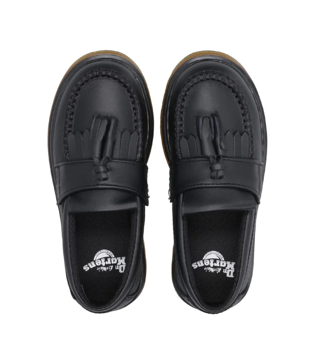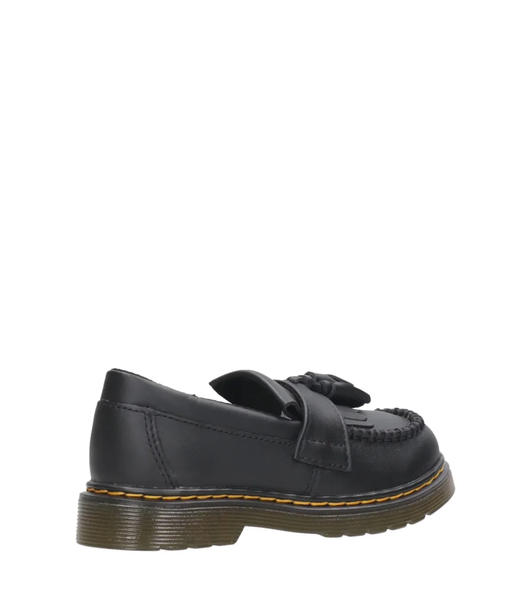 Mocassino Dr Martens Kids Adrian J realizzata in pelle con suola AirWair, con frangia kiltie ed iconiche cuciture gialle.