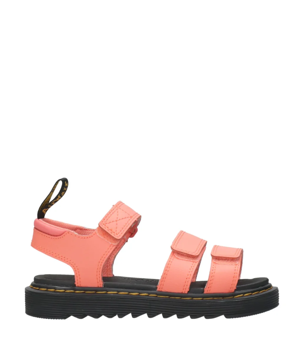 Suole piccole, tanto carattere. Il sandalo Klaire di Dr Martens Kids poggia su una suola EVA leggera ma al tempo stesso resistente, con un plantare SoftWair per un maggiore comfort. Realizzato con cinturini regolabili sulla tomaia e la caviglia per facilitare la calzata.