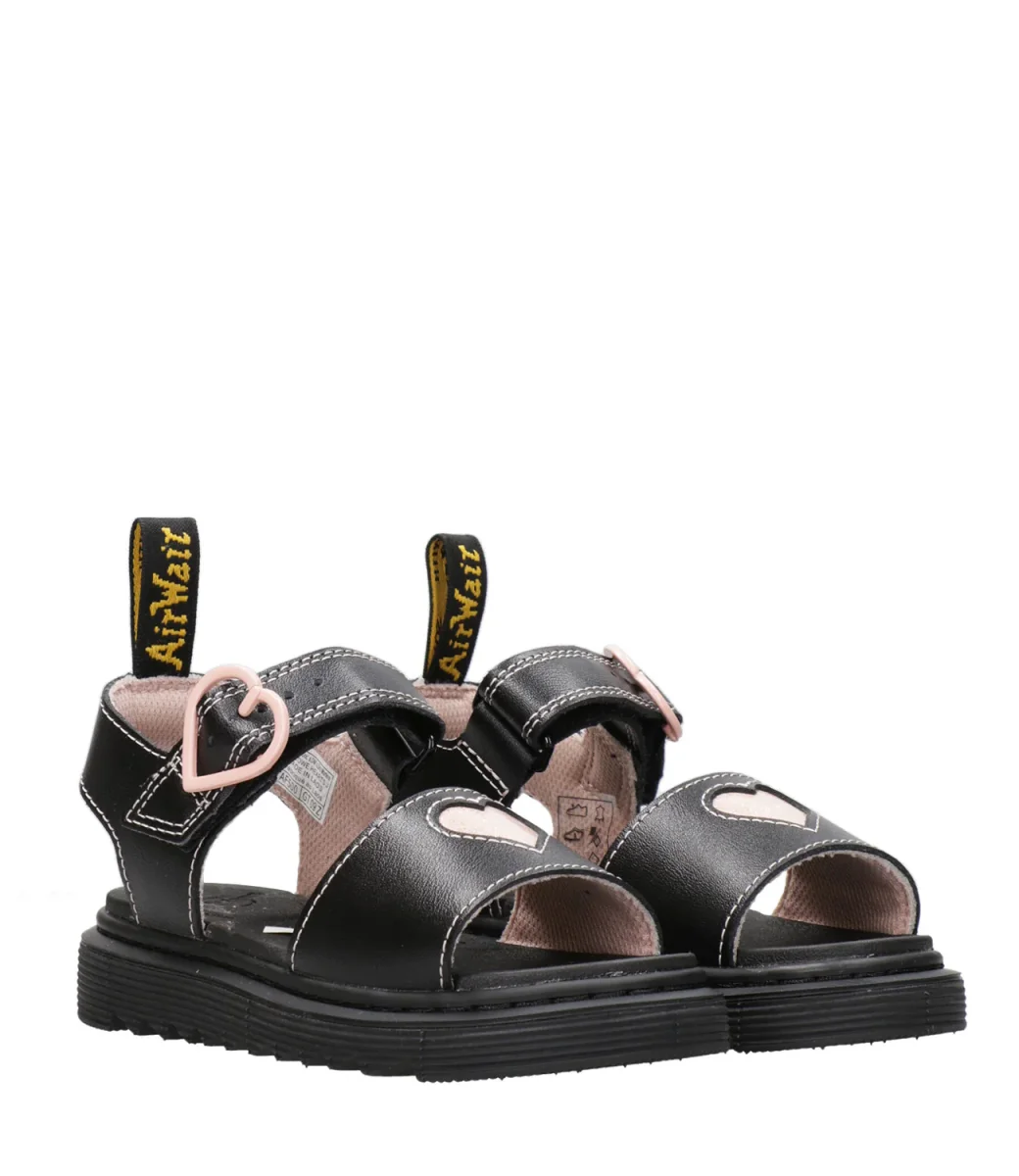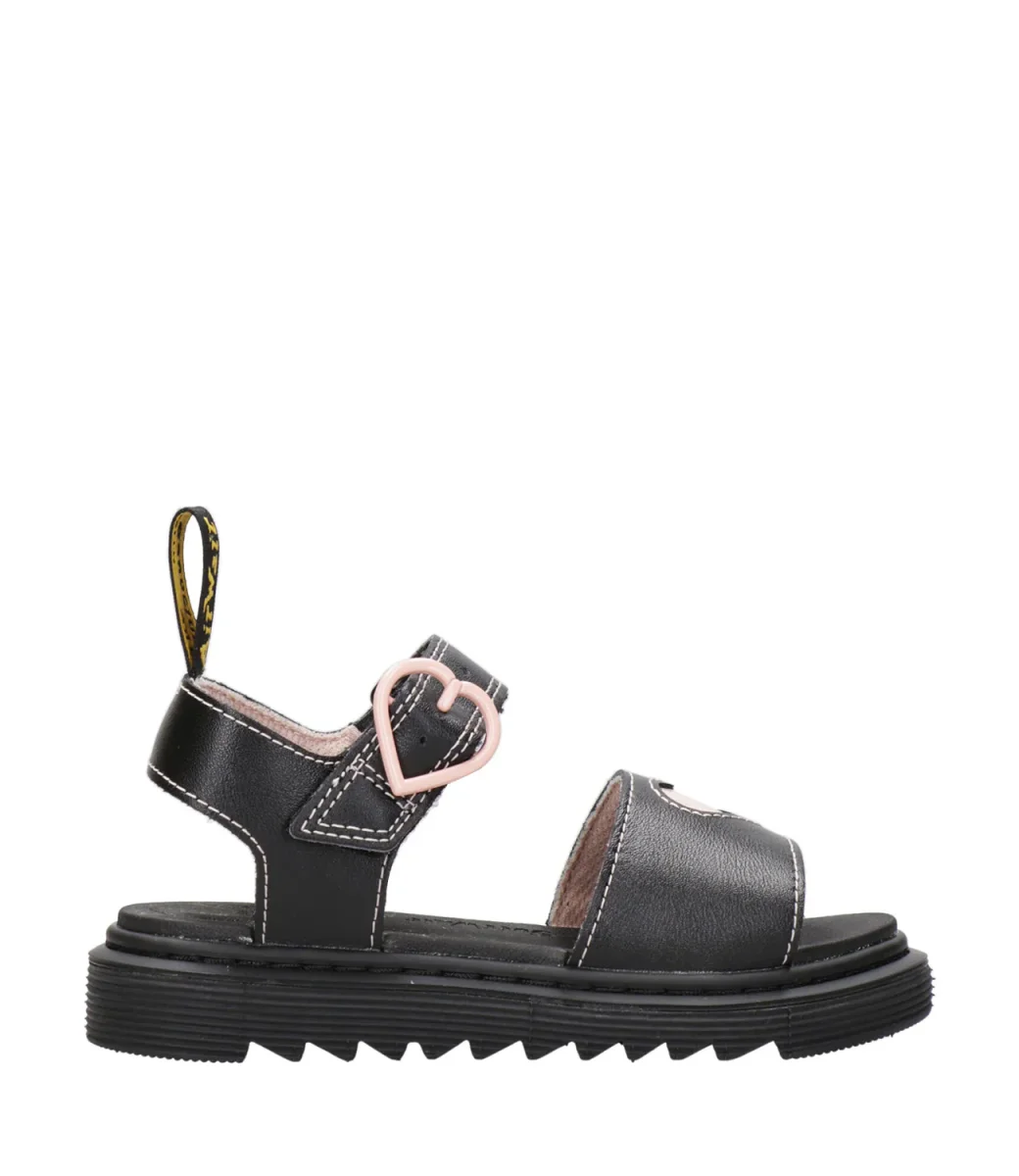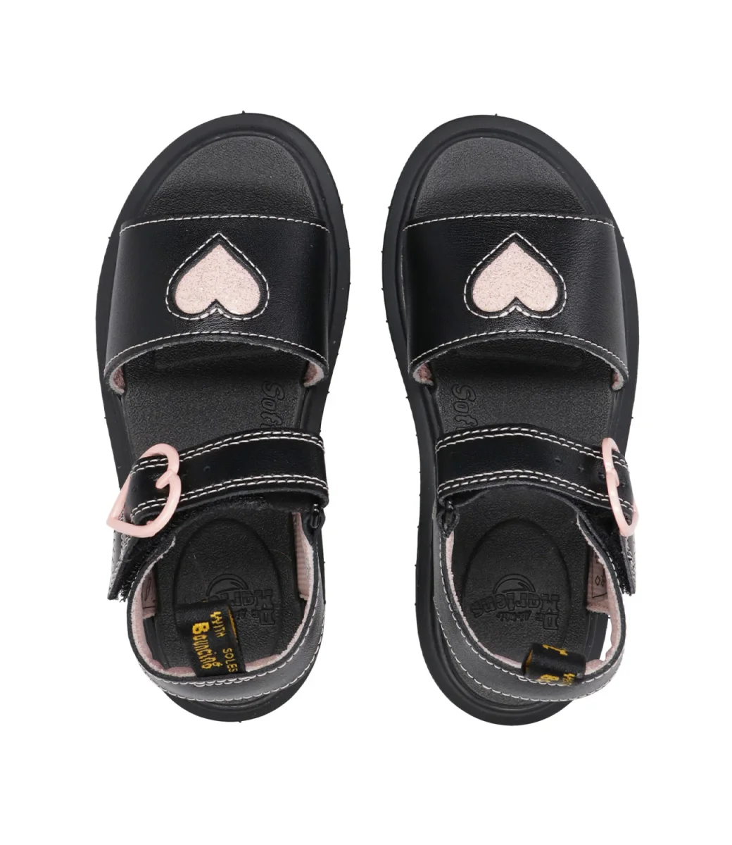 Sandalo Dr Martens Kids Marlowe Hearts T in pelle, con fasce fissa sul davanti con cuore intarsiato. Cinturino regolabile alla caviglia per una calzata personalizzata comoda in ogni occasione.