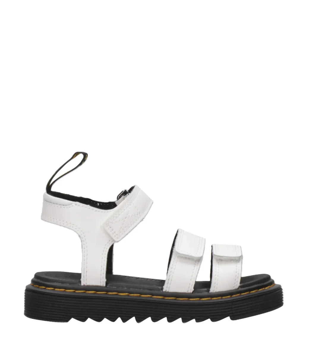 Sandalo Dr Martens Klaire J in pelle, con fasce regolabili con velcro sul davanti. Cinturino regolabile alla caviglia per una calzata personalizzata comoda in ogni occasione.