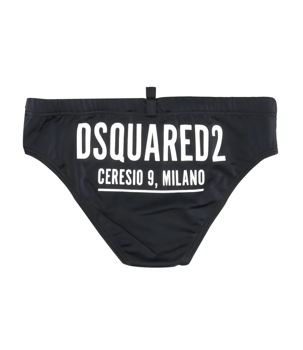 Costume slip Dsquared2 in lycra nero, con elastico in vita, foderato internamente, con stampa logo Dsquared2 sul retro.