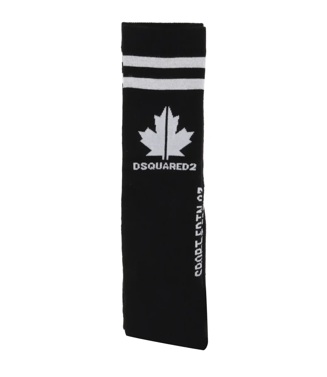 Calzini Dsquared2 Kids in cotone nero con profili a costine e logo brand laterale.