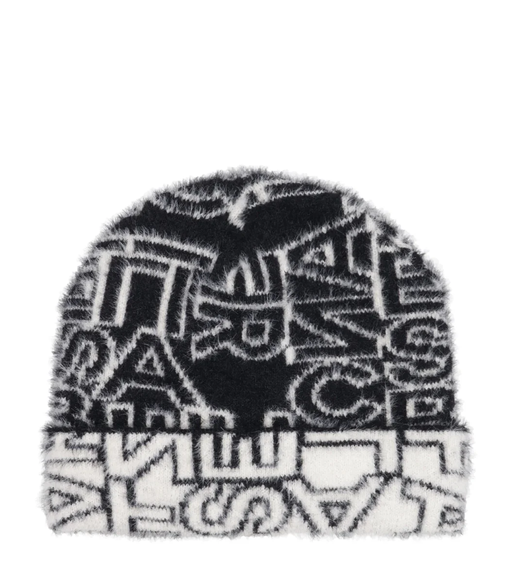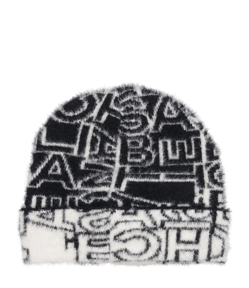 Dettagli:– Caldo filato– Motivo lettering jacquard all-over– Risvolto in colore a contrasto