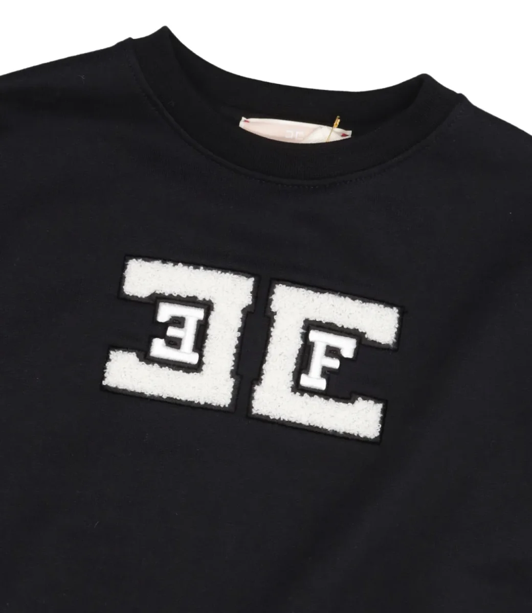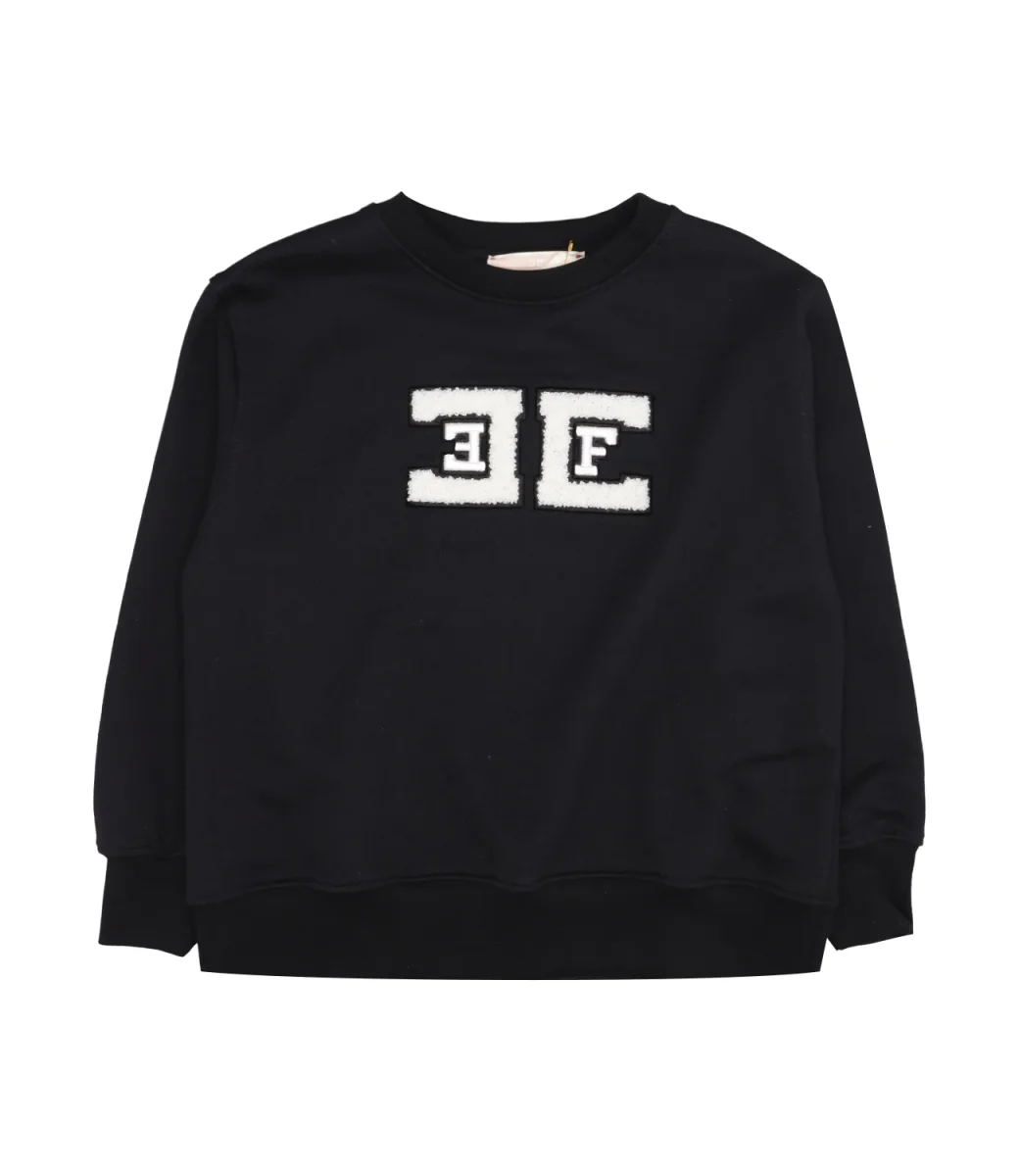Felpa Elisabetta Franchi La Mia Bambina in misto cotone, girocollo, maniche lunghe con polsini a costine, logo frontale in patch in rilievo, fondo con bordo a costine.