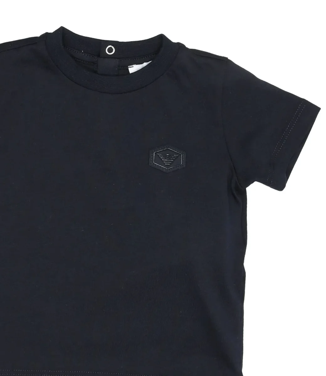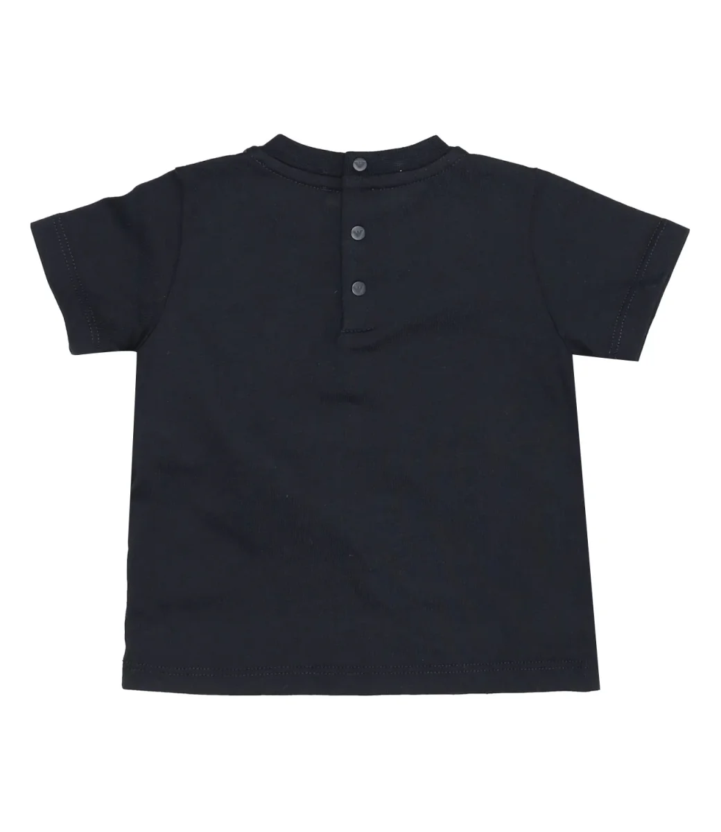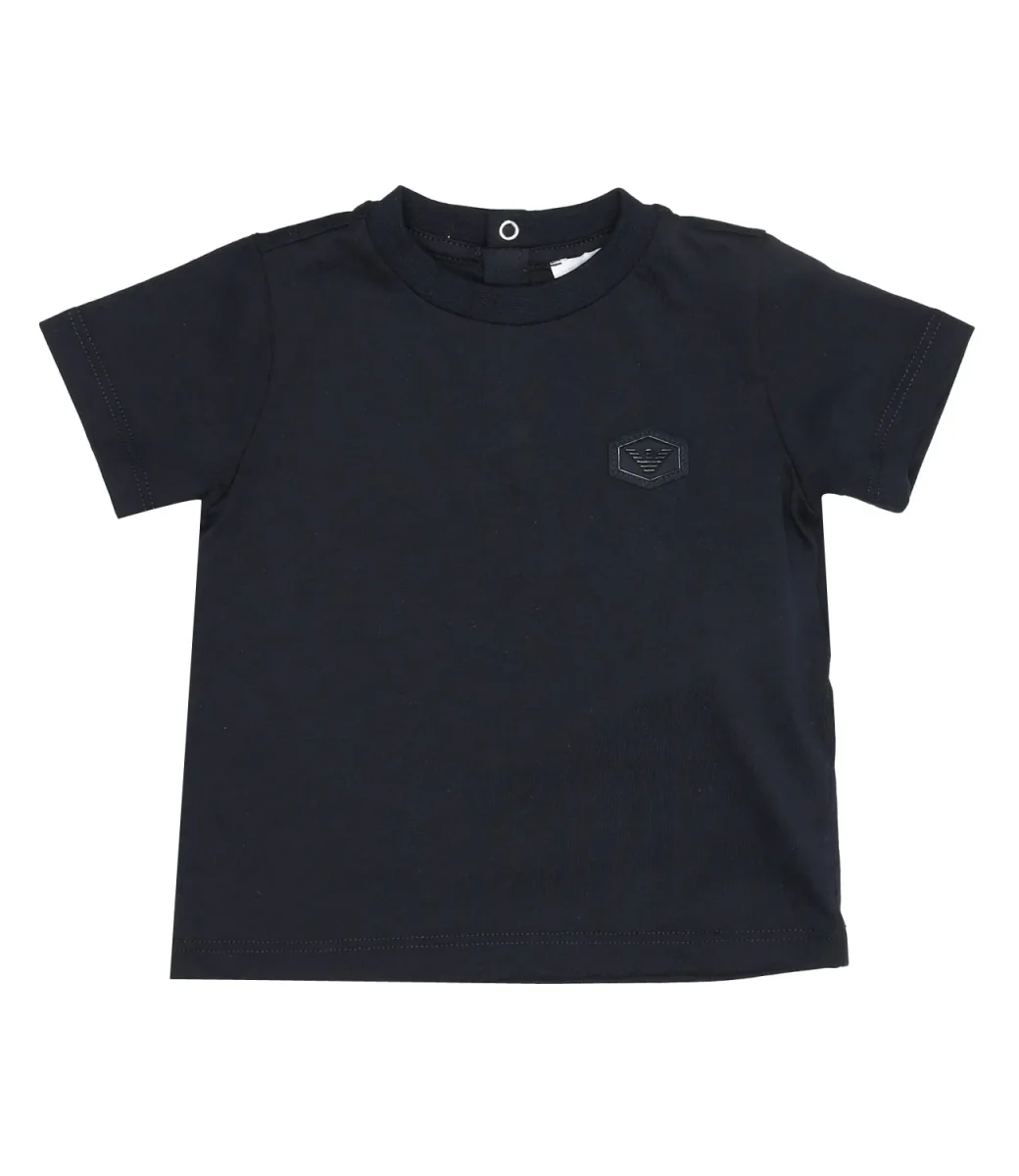 T-Shirt Emporio Armani Junior blu navy in cotone Pima superiore incredibilmente soffice, ultra-resistente e dalla particolare brillantezza. Il patch logato e a tono applicato sul lato sinistro del torace contraddistingue il capo. Girocollo, con maniche corte, orlo dritto.