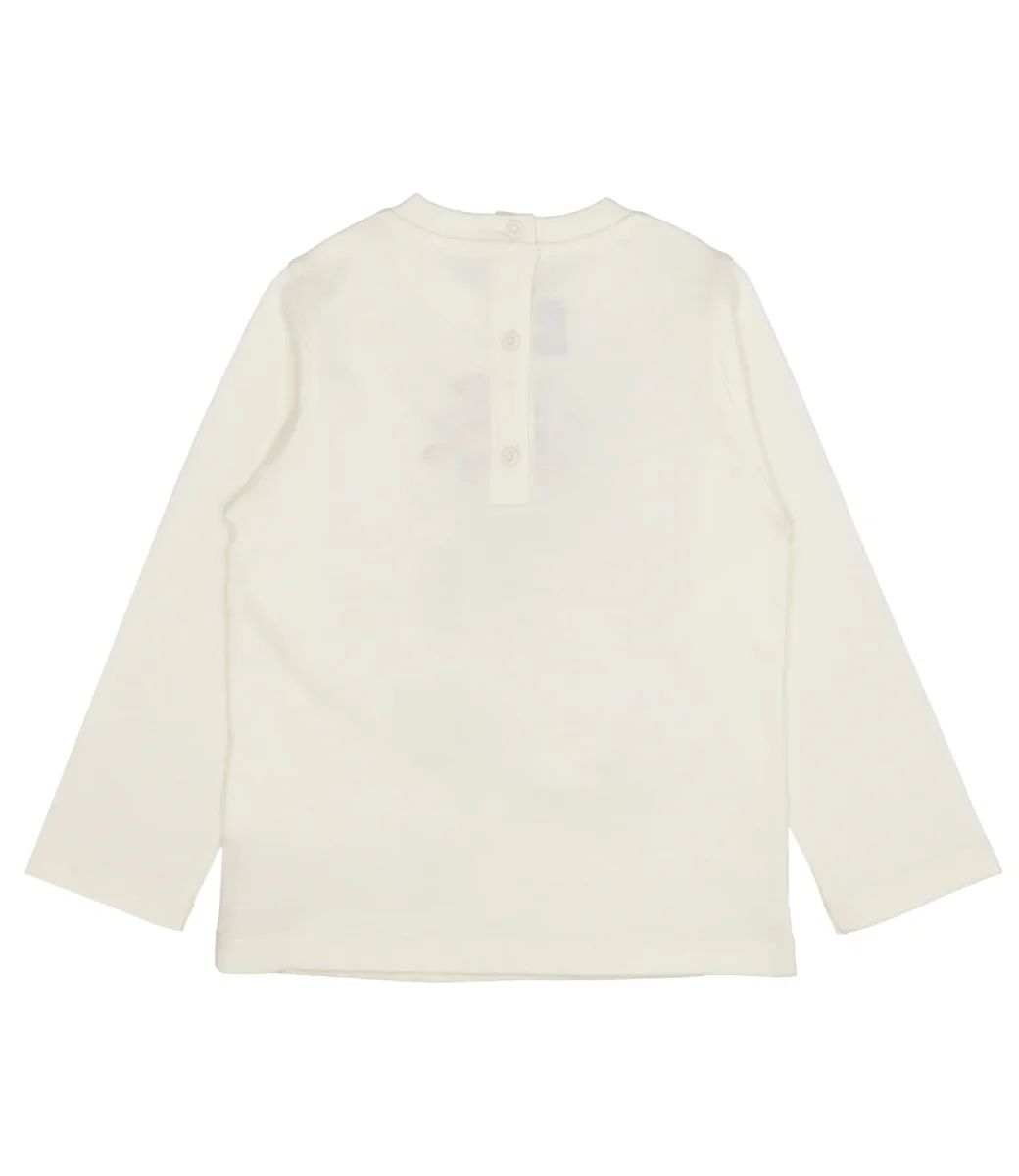 Dettagli:– Cotone– Girocollo– Maniche lunghe – Tinta unita– Logo stampato– Orlo dritto– Chiusura posteriore con bottoni automatici
