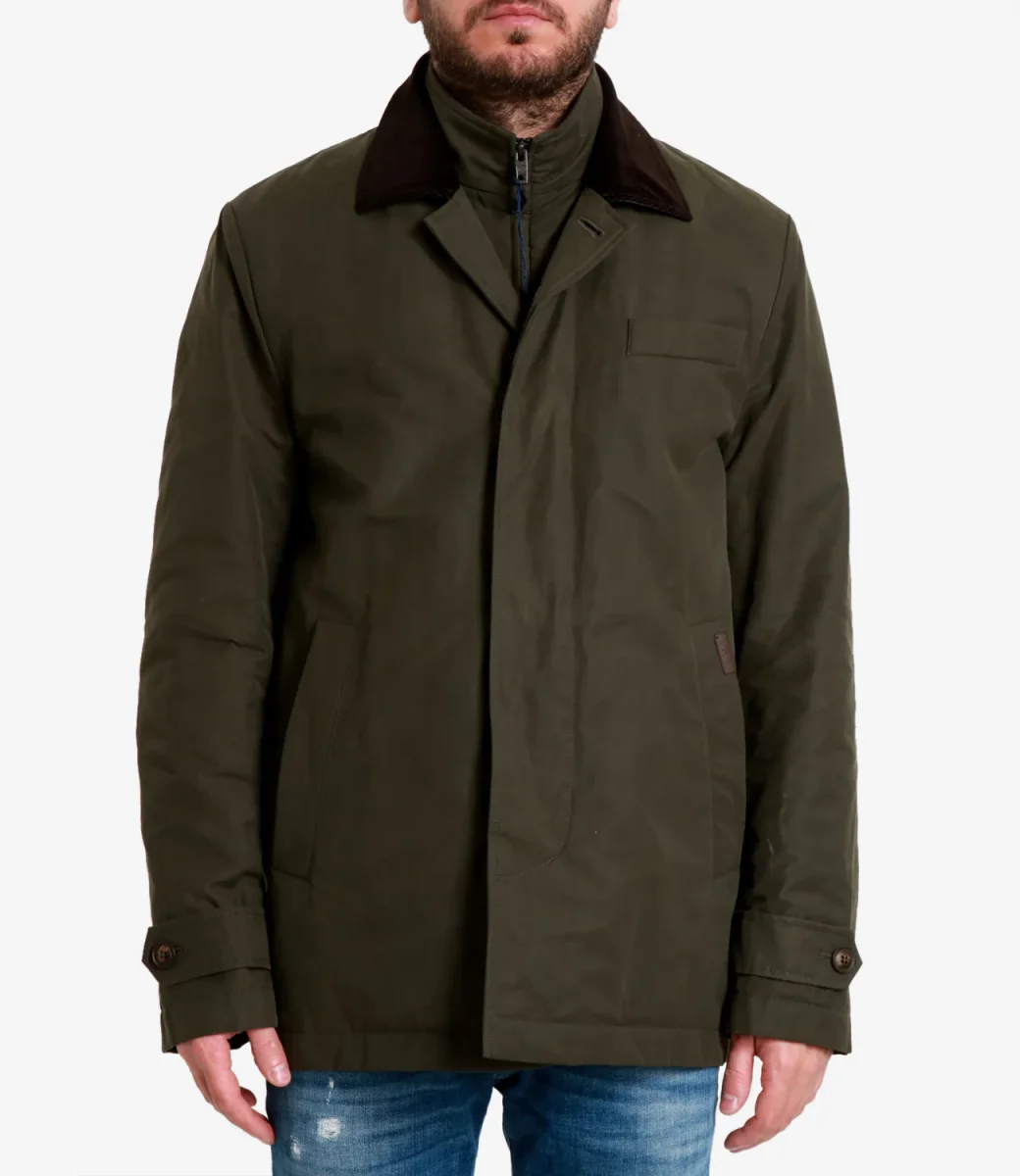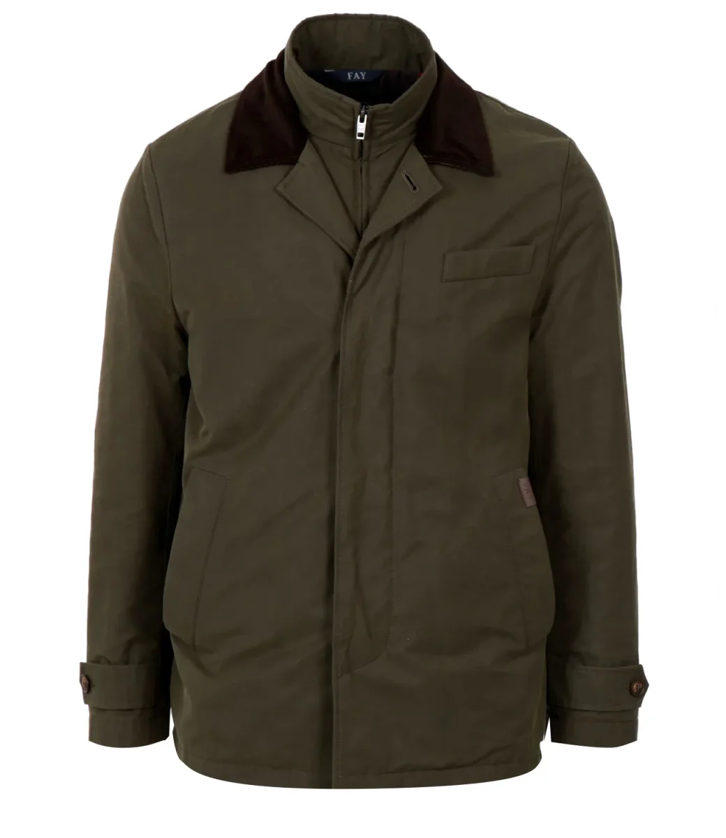 Giubbotto Fay Morning Raincoat Corto realizzato in faille di cotone e tessuto tecnico con trattamento antigoccia. Modello d’ispirazione british, perfetto per le giornate piovose e fredde che richiedono dinamicità.