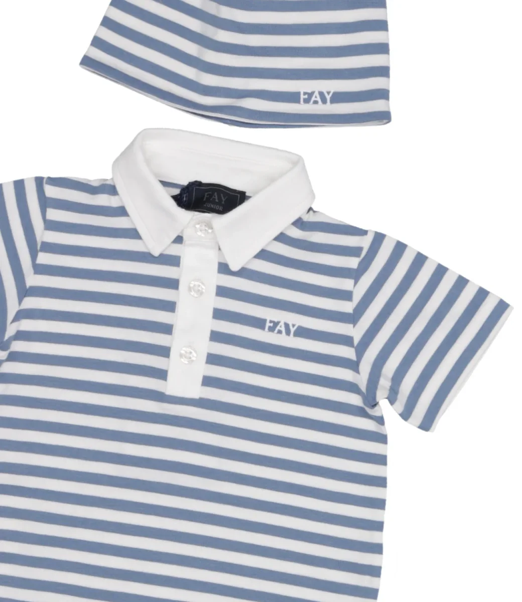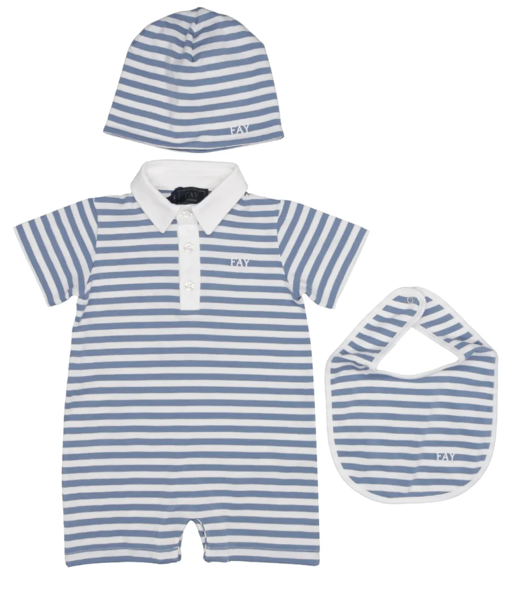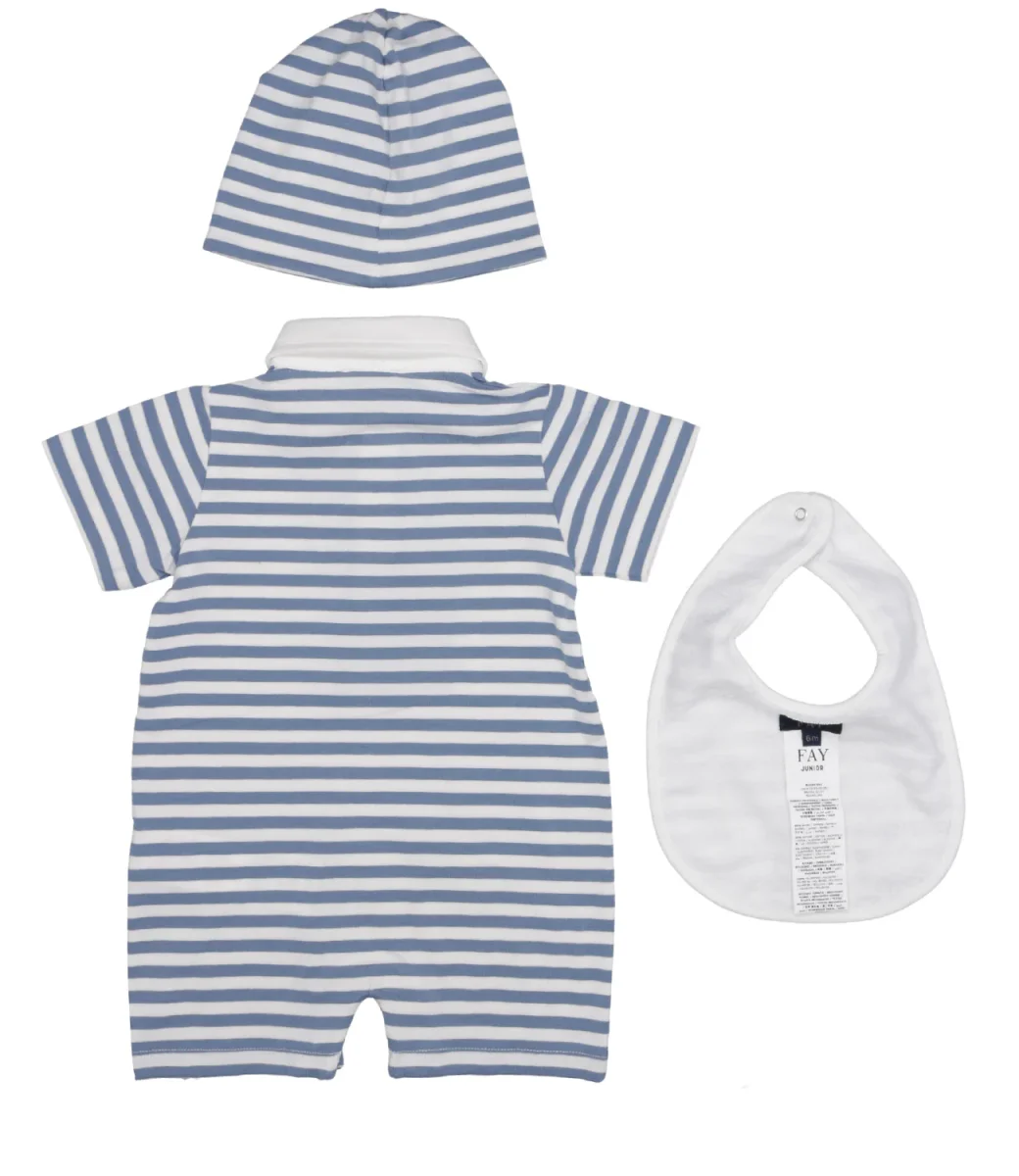 Set Fay Junior pagliaccetto, bavetta e cappello a righe in cotone.